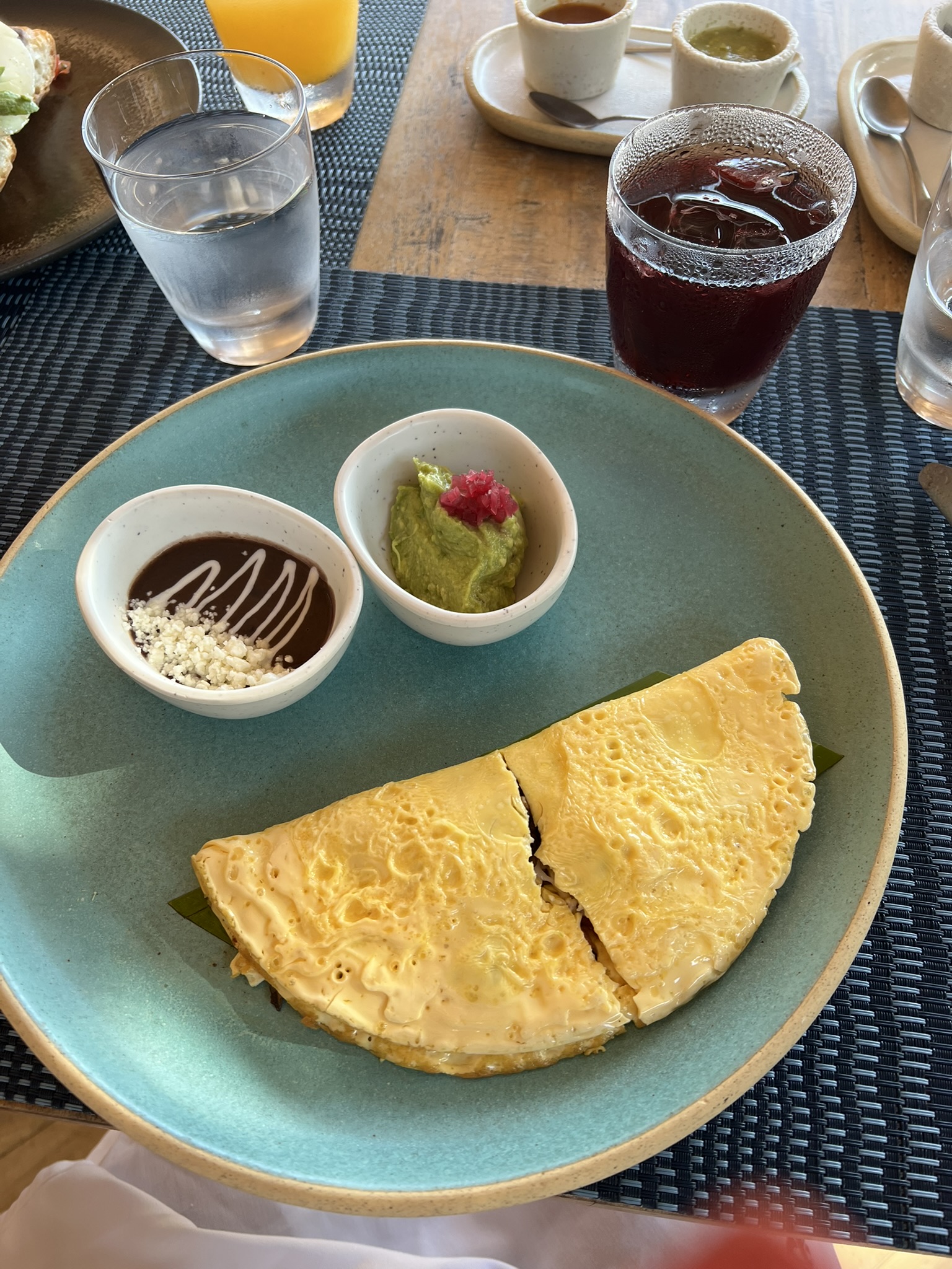 Vi fastnade snabbt för färsk frukt, chiapudding (en supergod variant med kokosmjölk och jordnötssmör), omelett samt molletes. Molletes var en ny bekantskap för oss men blev snabbt en favorit. Allt som serverades var snyggt upplagt på ett sätt som gjorde en riktigt glad.