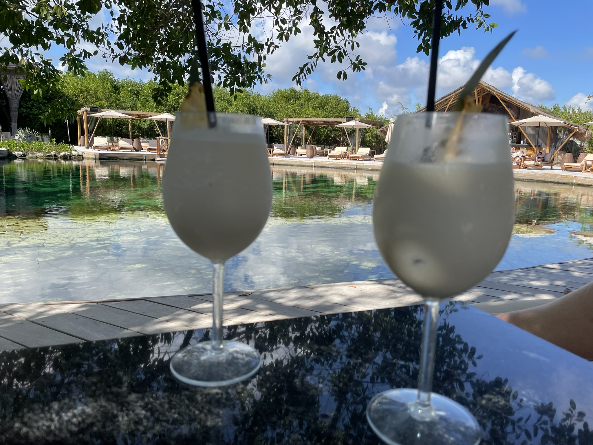 Efter frukosten tog vi oss till cenoten och slog oss ner i varsin solstol med lagom skugga. Även här blev man väl omhändertagen. Vi drack drinkar och blev serverade frukt och glassar som delades ut av personalen med jämna mellanrum.