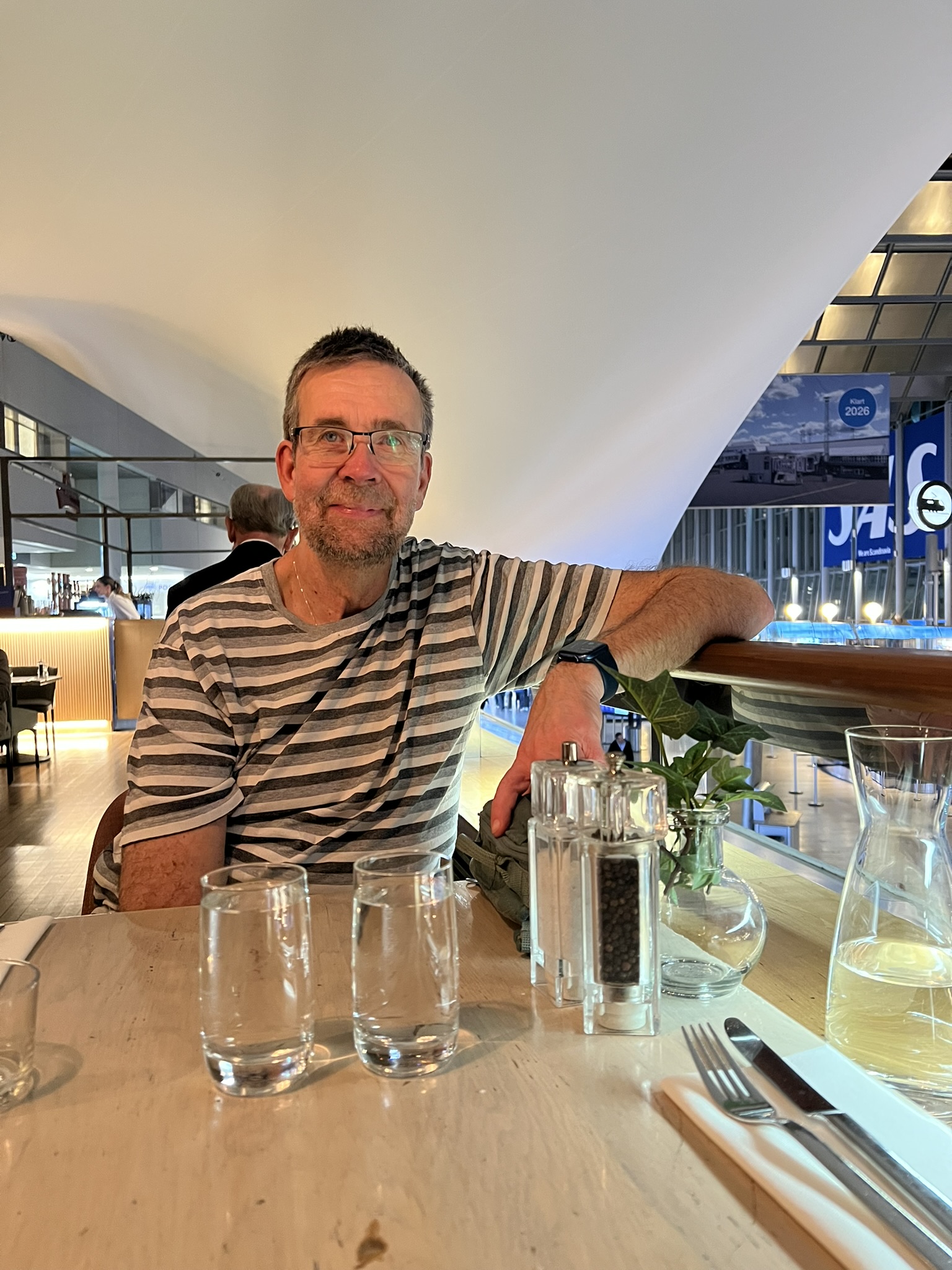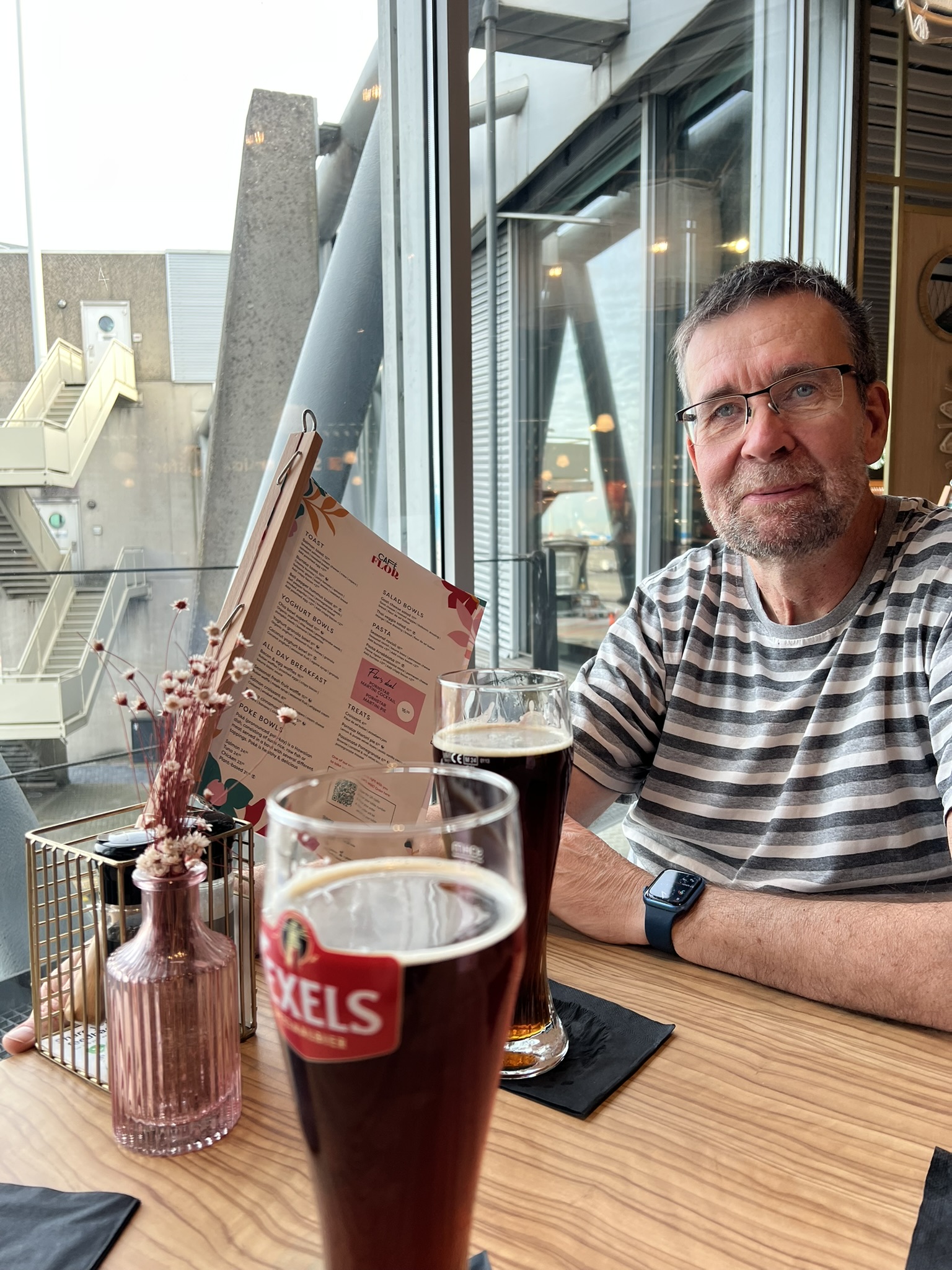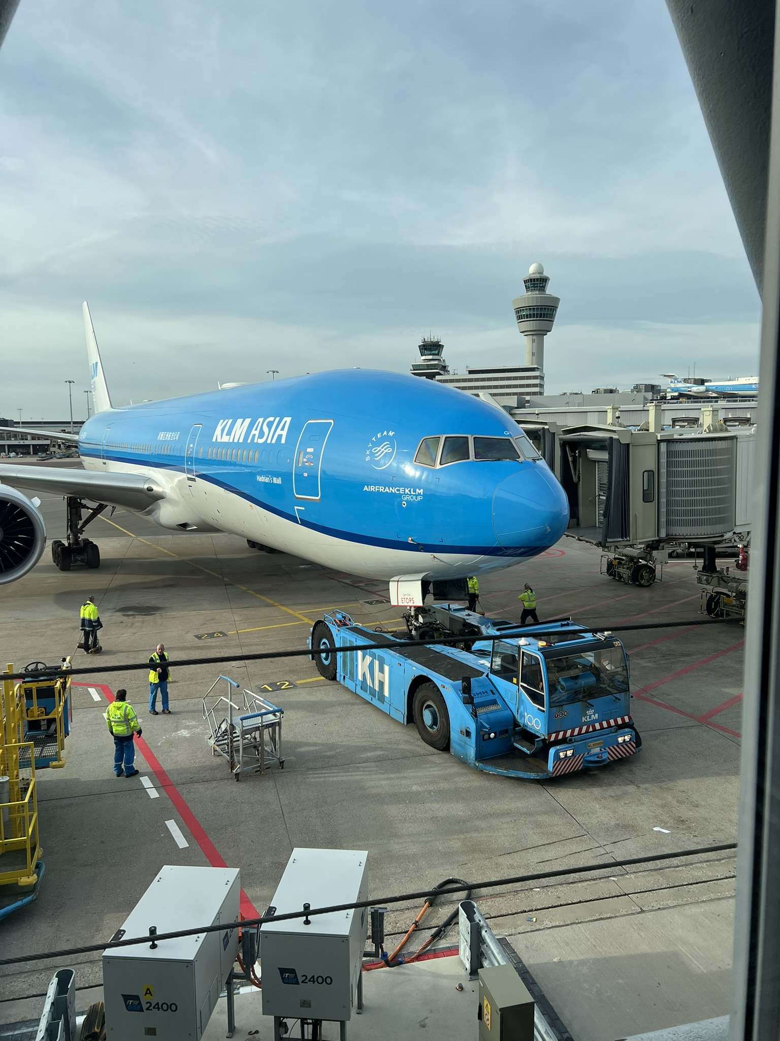 Resan till Amsterdam gick smidigt och i tid. På Schiphol hade vi gott om tid att hinna med en flygplatsöl, trots att det bara var förmiddag. Men den hör ju till!