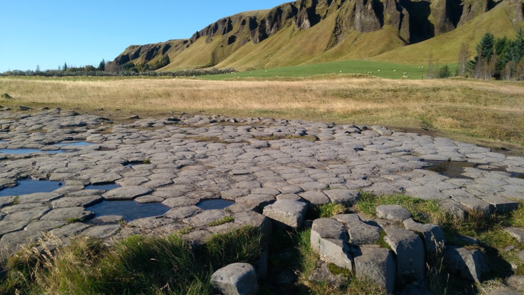 Med full tank vare vi redo för dagens äventyr. Började med att köra typ 200 meter ifrån bensinstationen för att kika på ett naturfenomen man kallade för Kirkjugólf eller ”Kyrkgolvet”. Det bestod av mestadels sexkantiga basaltkolumner som bildats i samband med lavaströmmar och bildat en platt yta som såg ut som ett slätt, mänskligt tillverkat golv. Tänk vad naturen kan åstadkomma.