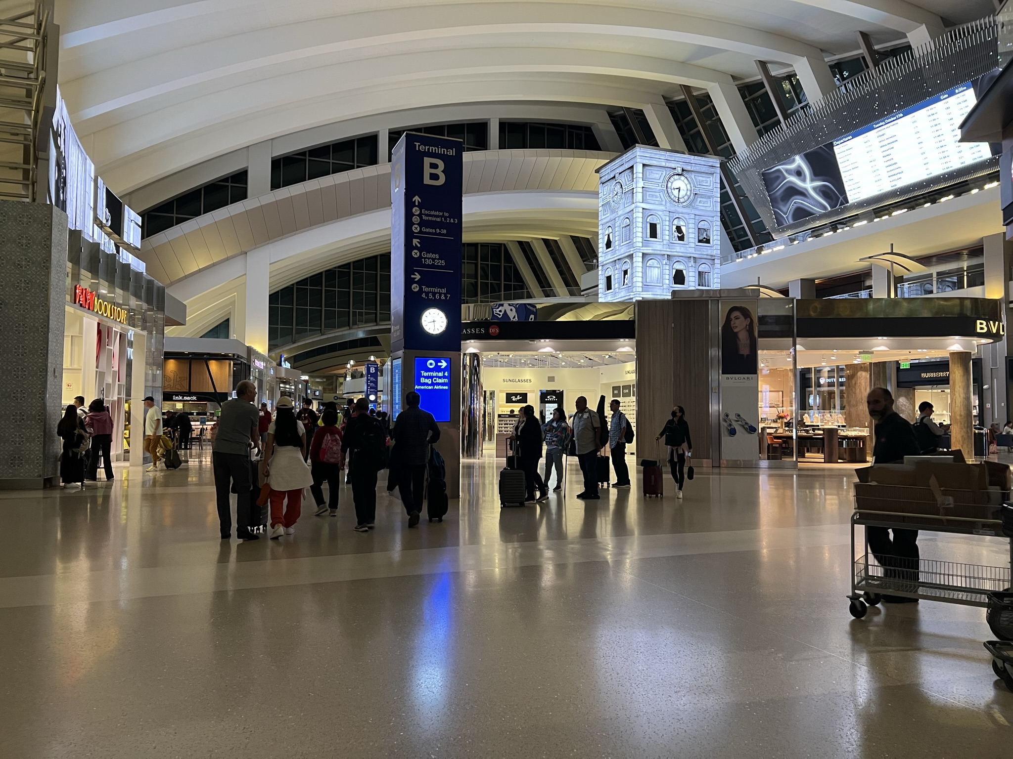 Nu hade klockan hunnit bli ganska sen eftermiddag så vi tog oss mot hotellet igen. Det börjar kännas som vi är på väg härifrån och bara går omkring och väntar på att klockan ska bli tillräckligt mycket för att vi ska kunna åka till flygplatsen. Efter att ha hämtat packningen och suttit i lobbyn en stund så bestämde vi oss för att vi lika gärna kunde sitta på flygplatsen och vänta. Det var nog tur att vi åkte för det var kolsvart när vi kom fram. Det mörknar fort efter att solen gått ner. Nu vidtog många och långa köer till incheckning , säkerhetskontroller och så vidare, innan vi var på plats vid gate 202. Nu väntar elva timmar på planet innan vi landar på Fiji för några lata dagar i solen.