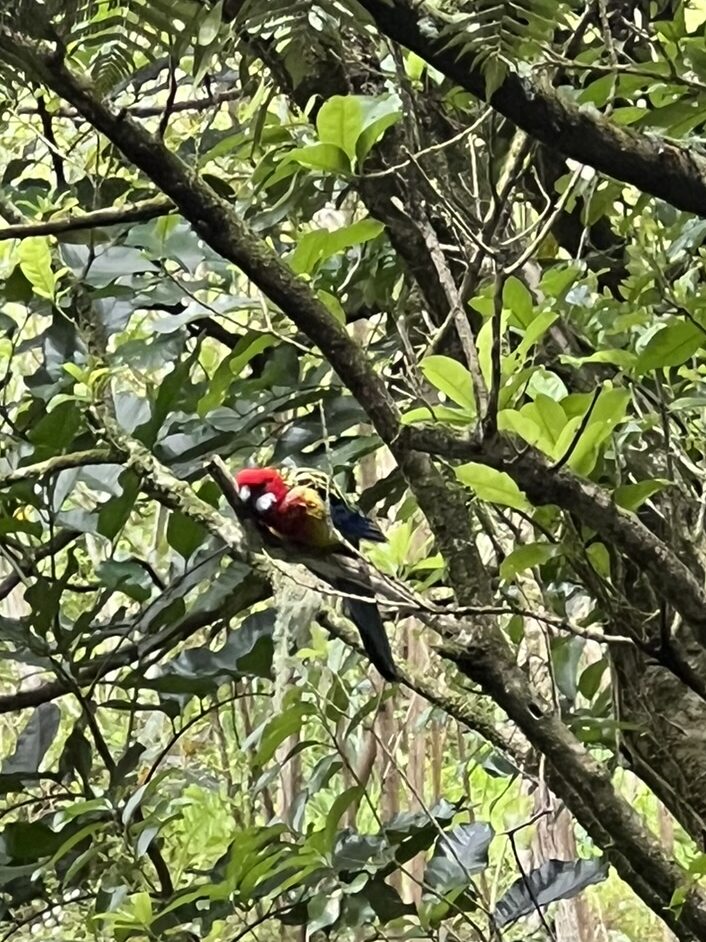 Trädgården var trevlig men vi fick nog inte fullt grepp om var de olika delarna låg. Här och var fanns det stigar in där man visade något tema. Vi vände uppåt vid besökscentret efter att ha loggat en geocache som låg i närheten. Wairarapa track var mysig och tom på folk. Vi såg papegojor och andra fåglar bland bladen på träden.