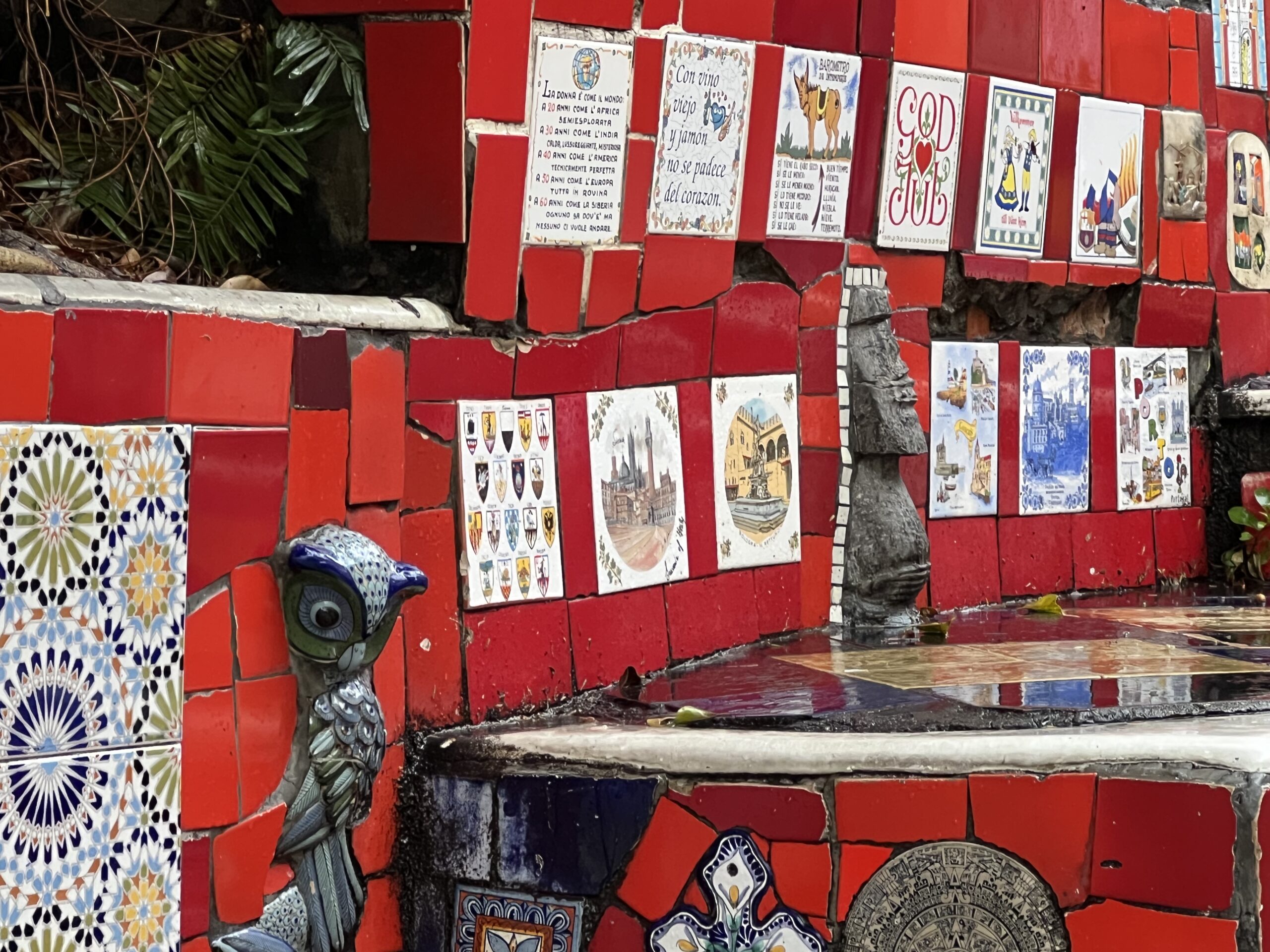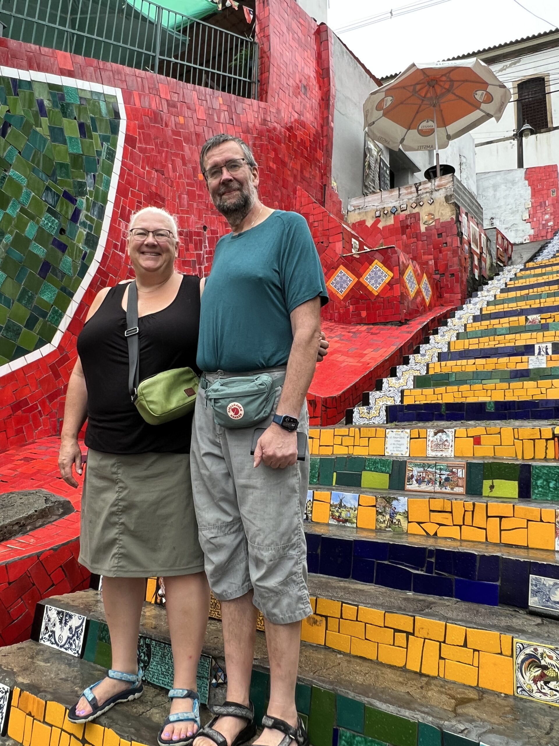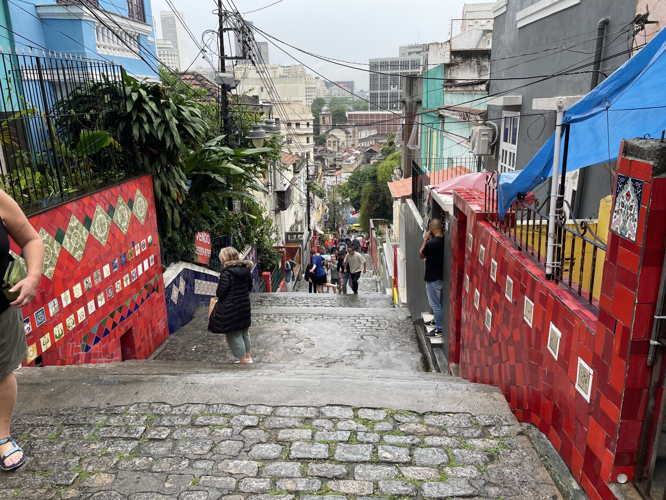 Nästa stopp var ännu en okänd plats för min del. Det skulle dock visa sig att jag var i klar minoritet. De flesta, även Maria, verkade känna till Escadaria Selarón eller ”the Lapa steps”. En trappa vars steg och väggar pryds med tusentals kakelplattor från i stort sett världens alla länder. Vi stannade en stund och letade bland plattorna och försökte identifiera länderna. En riktigt spännande, och för mig okänd plats. Och visst hittade fler med svensk text och motiv.