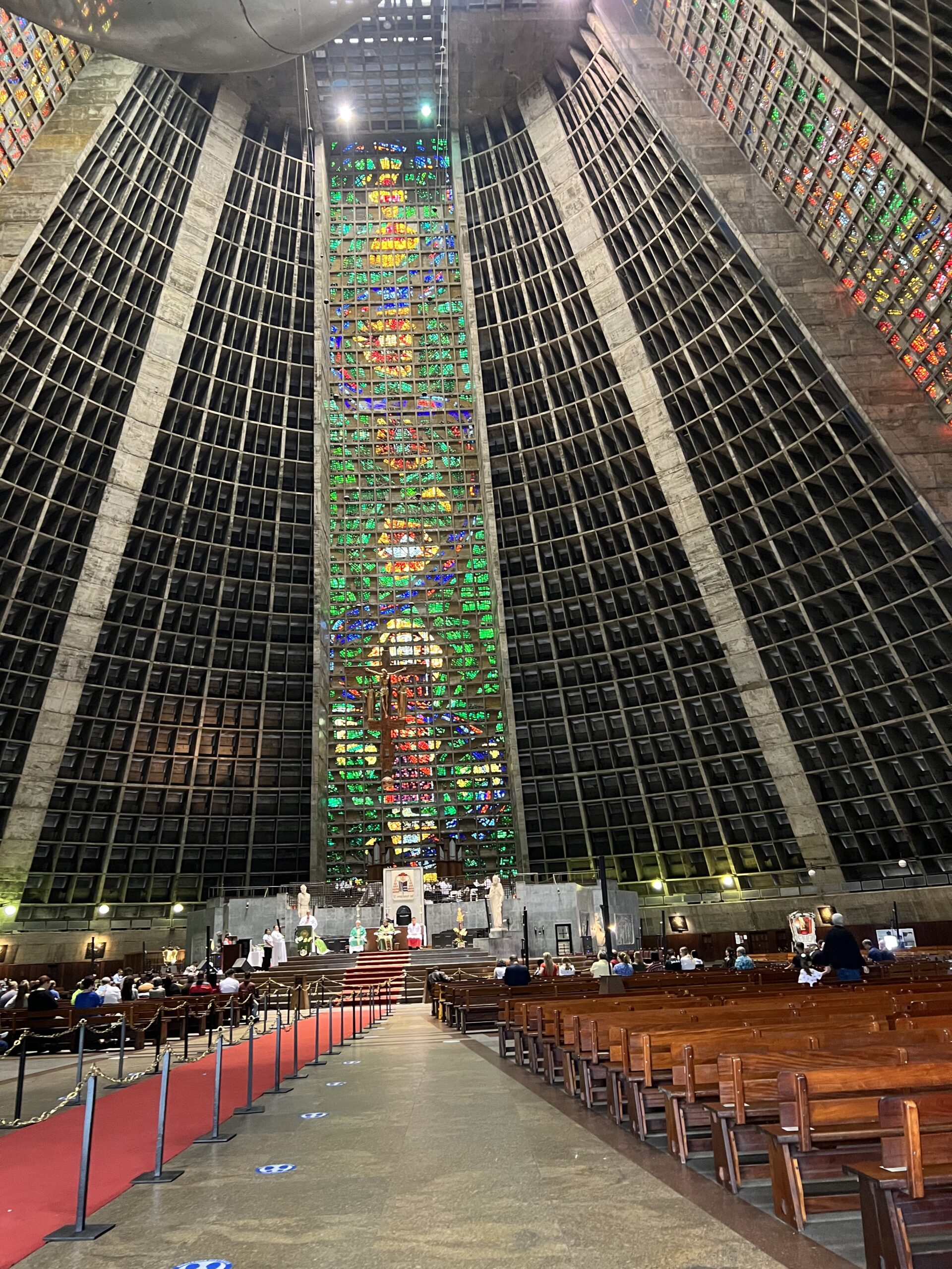 Den moderna katedralen Catedral Metropolitana de São Sebastião utgjorde nästa stopp. Det var verkligen en märklig känsla att se en katedral utformad i modern och klart annorlunda stil. I huvudet förväntar man sig ett klassiskt byggnadsverk från typ 1700-tal eller så och därför blev det en krock i huvudet. Jag gillade verkligen utformningen och kanske bidrog det faktum att det var söndag med mässan i full gång till hela upplevelsen.