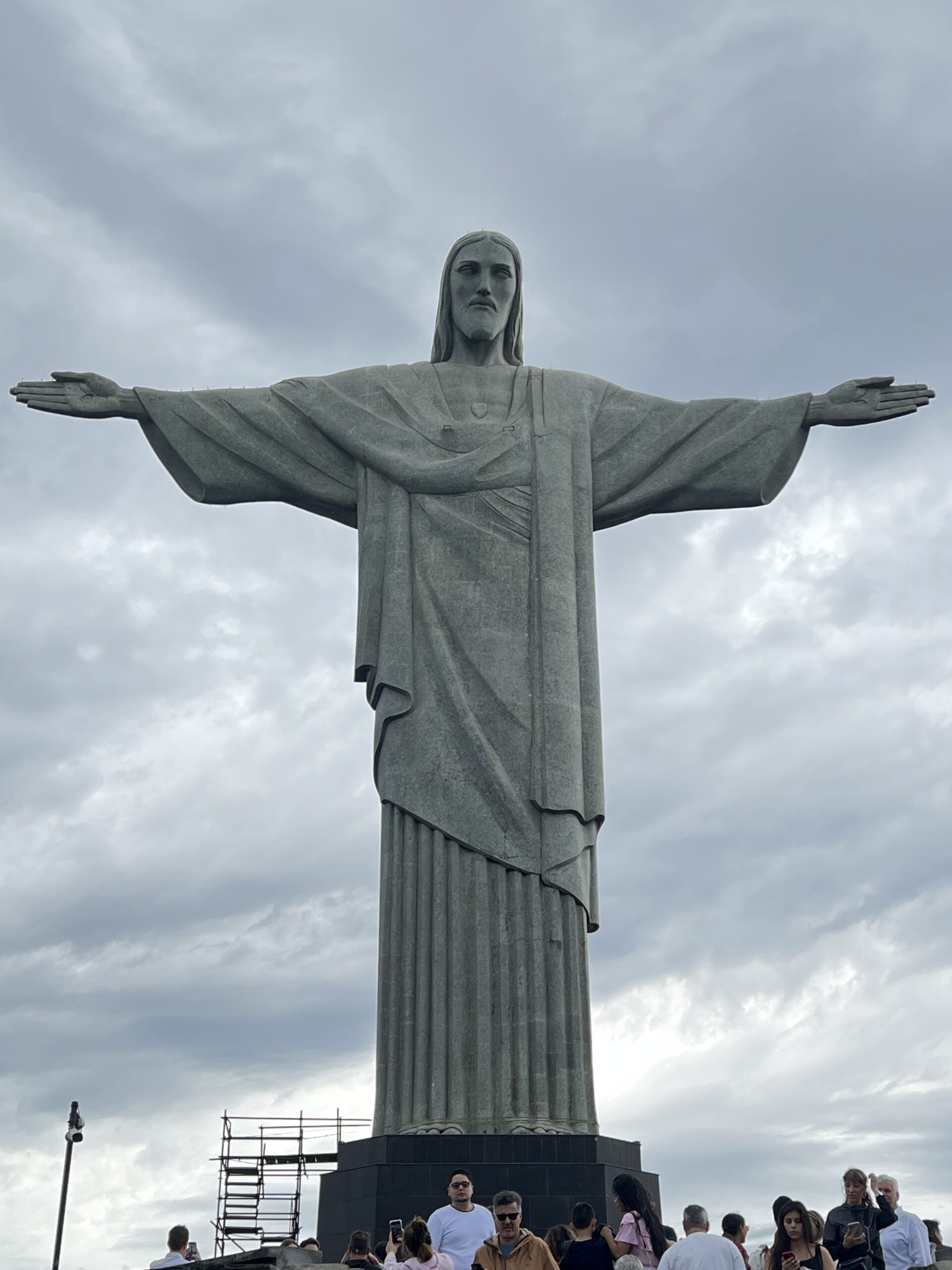 Det regnar idag och guiden berättade att det är mycket ovanligt. Ser man det positivt får vi därför uppleva något extra ovanligt. Men när jag tittade upp mot Kristusstatyn som inte ens syntes i diset som låg över berget var det klart blandade känslor får jag erkänna. Hur som helst bestämde guiden att vi började med de platser som inte krävde superväder så håller vi tummarna för bättre väder senare under dagen.