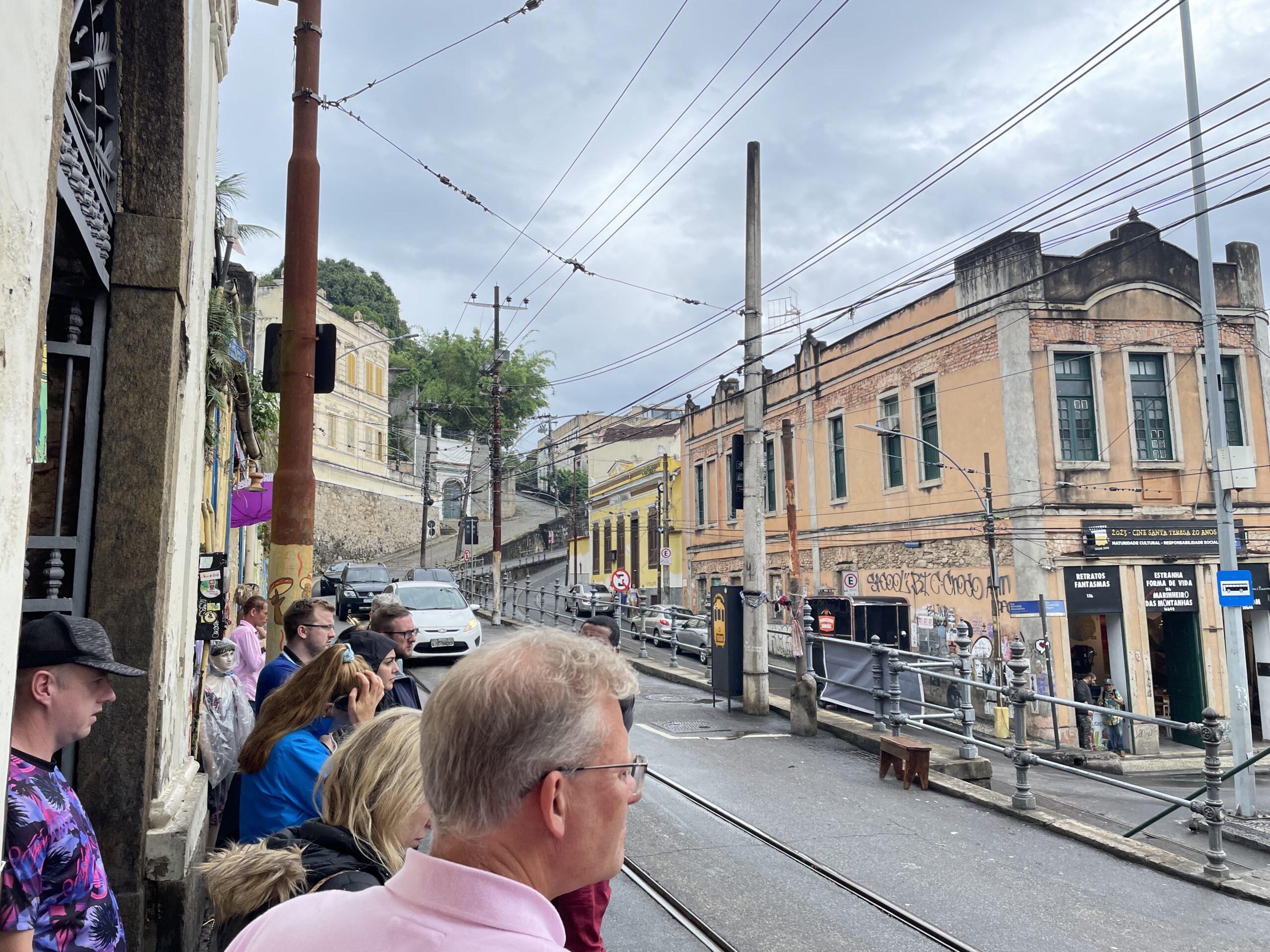 Det var nog svårt att toppa detta men på vägen ner gjorde guiden ett försök. Kanske minns ni spårvagnen och akvedukten? Spårvagnen går till Santa Teresa, en välbevarad stadsdel med välbevarad Europeisk kolonialstil. Vi stannade till och kikade på omgivningarna, jag tror jag hade trivts här. Hade jag bott nere i staden hade jag nog ofta tagit spårvagnen uppför berget och besökt någon av gatuserveringarna.