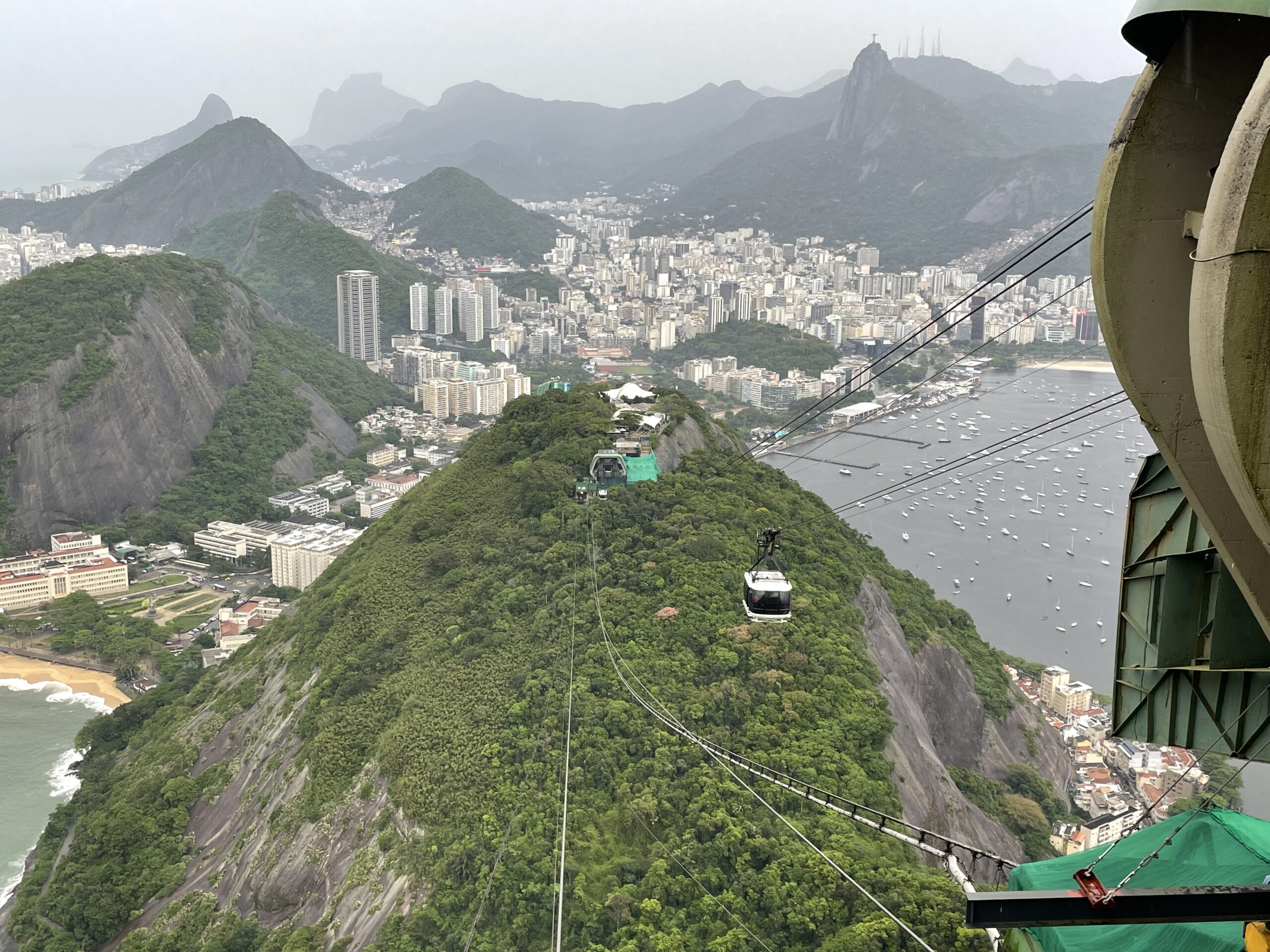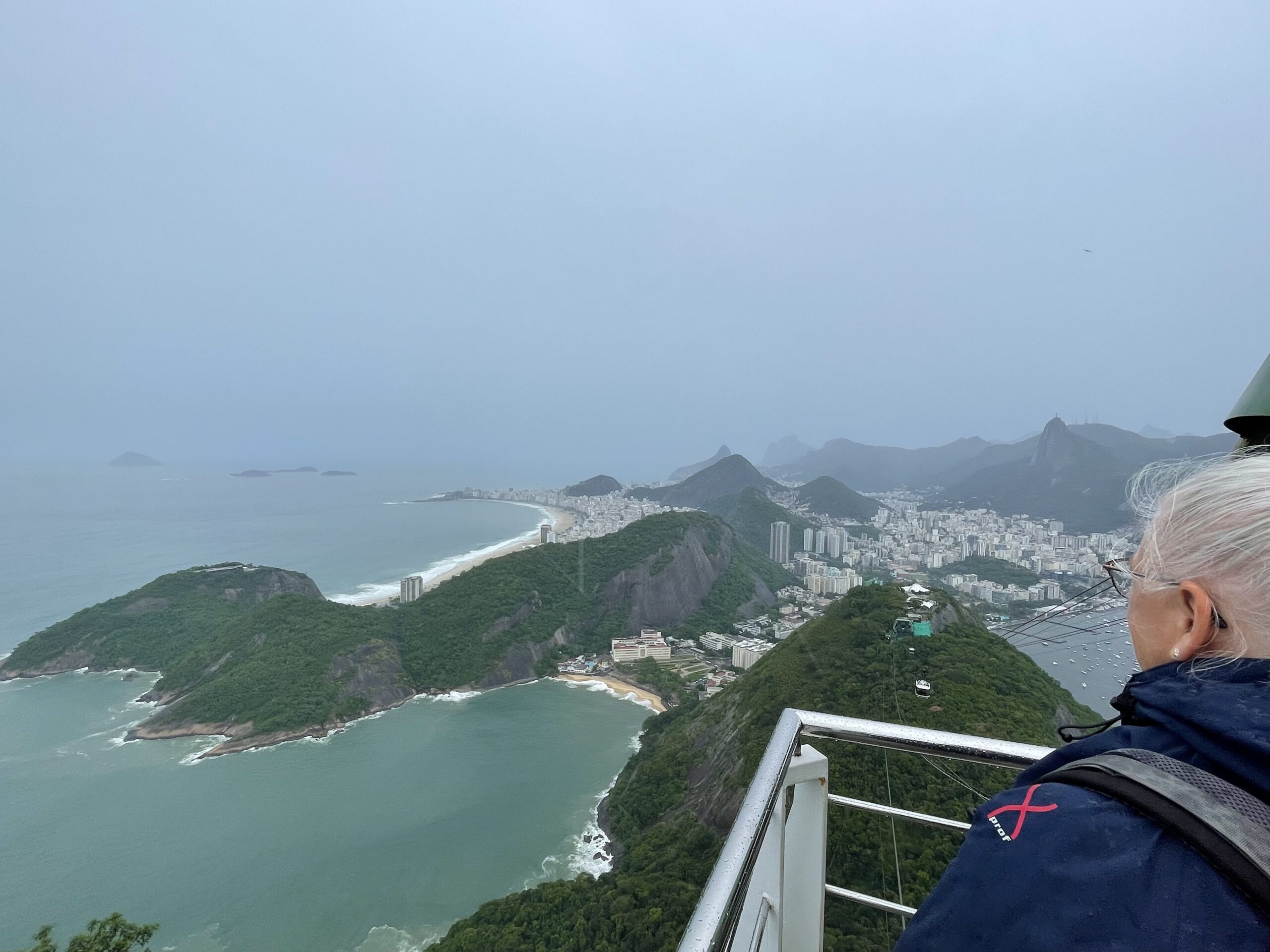 Utsikten då? Jo, hade jag varit i Rio utan att besöka sockertoppen hade det ju känts helt galet. Utsikten var minst sagt slående och en häftig sak var att se stora flygplan på inflygning mot inrikesflygplatsen en bra bit under oss. Men jag tror att hade vi besökt sockertoppen innan vi besökte Kristusstatyn hade upplevelsen varit större. Sockerttoppen är lägre och bjuder inte riktigt på samma storslagna vyer är min blygsamma åsikt.