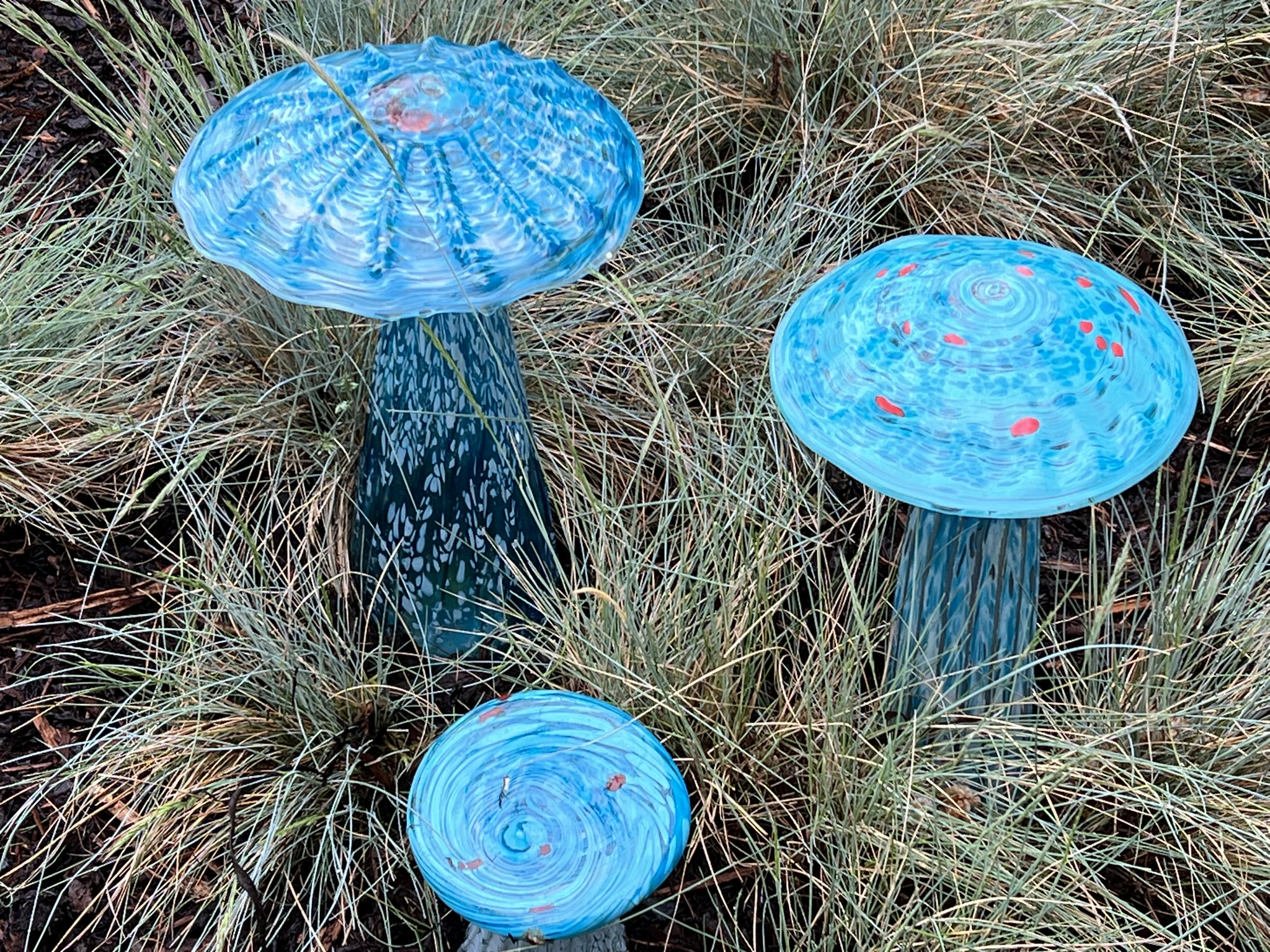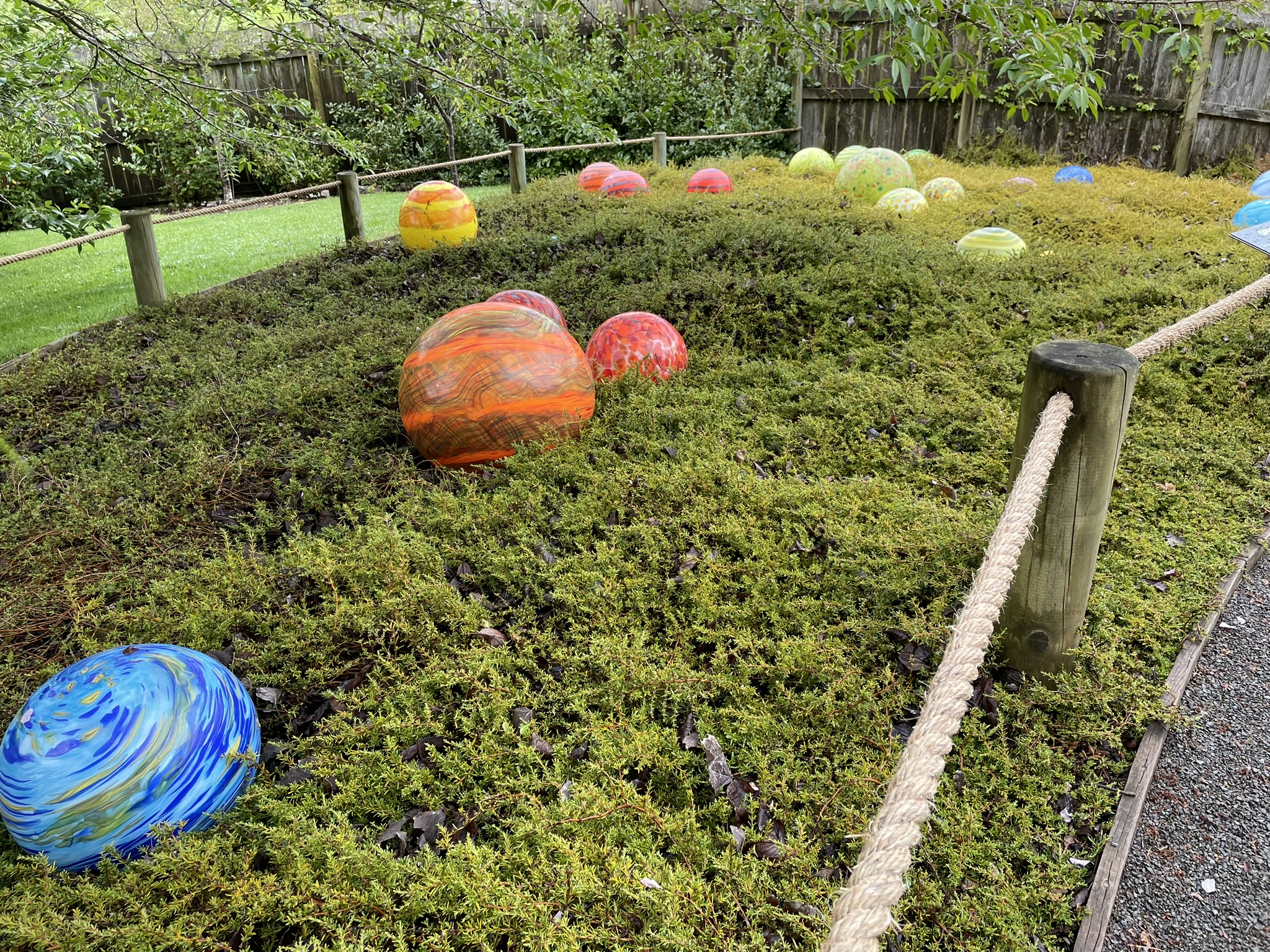 Det var otroligt fint i trädgården och vilka alster de skapat! Svampar, blommor, spiraler, jättelika klot och träd.
