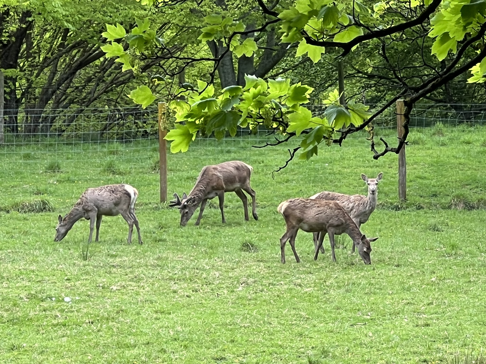 Idag bestämde vi oss därför för att äta ute. Vi promenerade upp mot centrum och passerade först en liten park med fågeluppfödning gissar vi. Det fanns papegojor och annat i öppna burar som totalt var stort som ett växthus. Det fanns även en damm med änder och gäss samt en hage men hjortar som stirrade misstänksamt på oss.