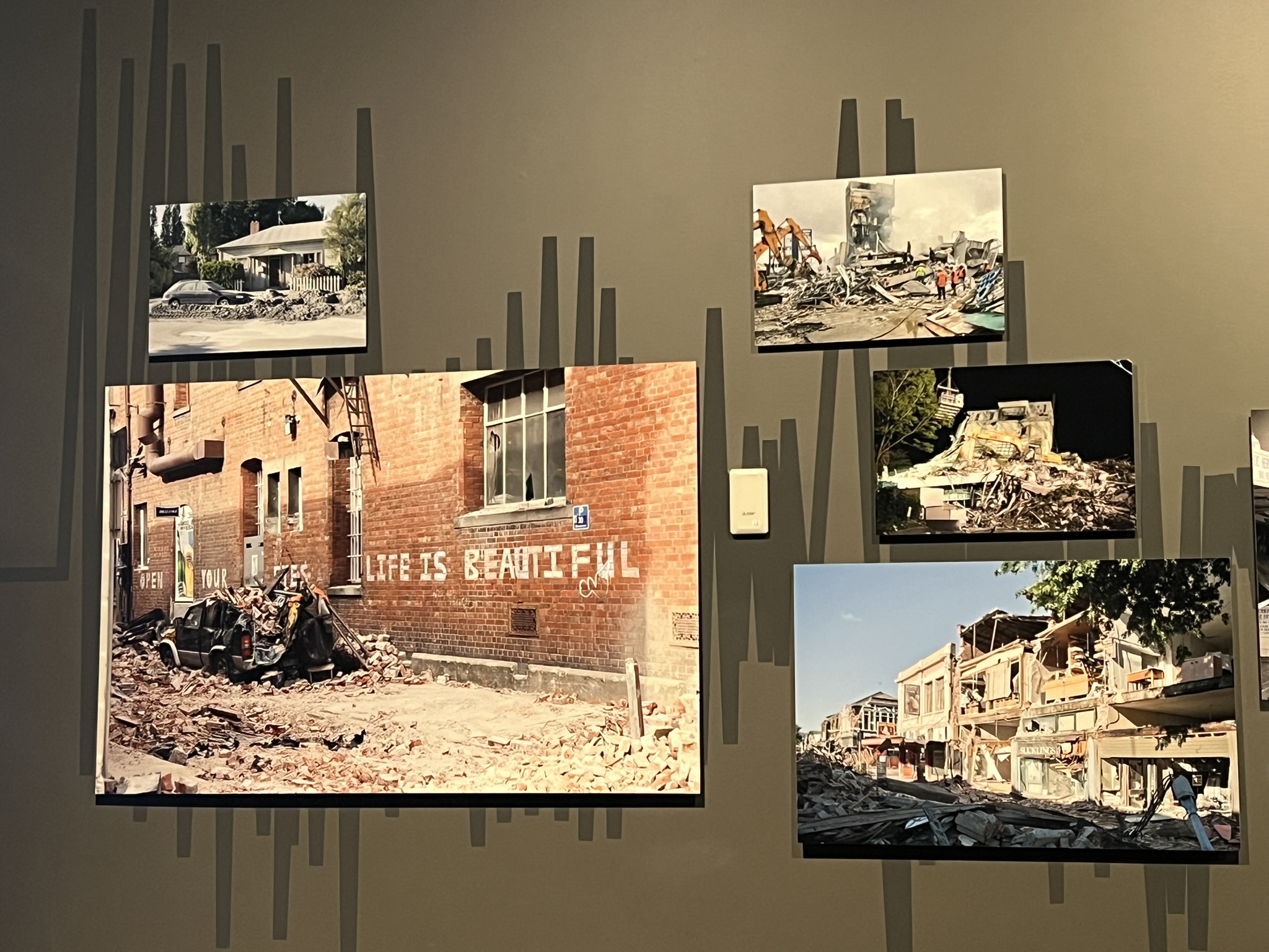 För att försöka förstå hur det var under tiden för jordbävningarna så gick vi en promenad där människor som varit med berättar (i mobillurarna) om hur det var och vad de var med om. Det var starka berättelser och gav verkligen en känsla för hur det var under de första skrämmande timmarna. Det finns också ett museum, Quake City, dit vi gick för att få lite mer kött på benen. Kan säga att vi båda är mycket tacksamma för att vi bor på ett ställe där jordbävningar förekommer ytterst sällan och aldrig i paritet med det vi sett här!