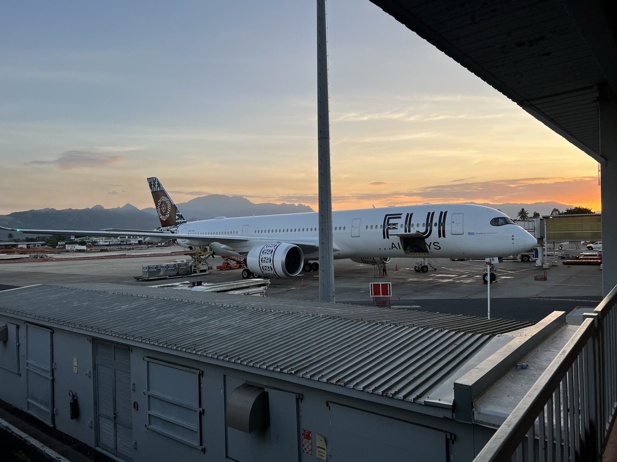 Trodde att det kanske skulle ta lite tid med den biologiska säkerhetskontrollen (de vill inte ha in främmande saker i naturen här heller) men allt de gjorde var att samla in tulldeklarationen och scanna bagaget. Därefter var vi i Fiji!
