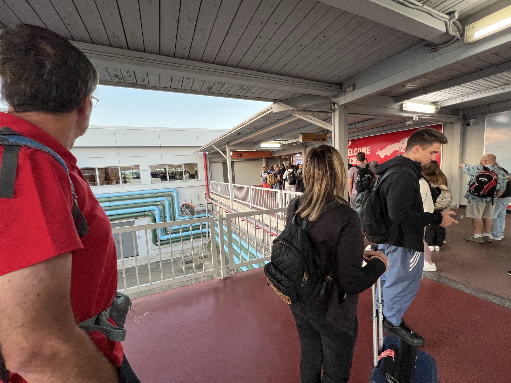 Kaptenen hade med en lätt sarkastisk ton berättat att det var kallt, enbart 23 grader. Ännu hade inte solen fått full kraft så det stämde nog bra. Men det låg värme i luften kan man säga.