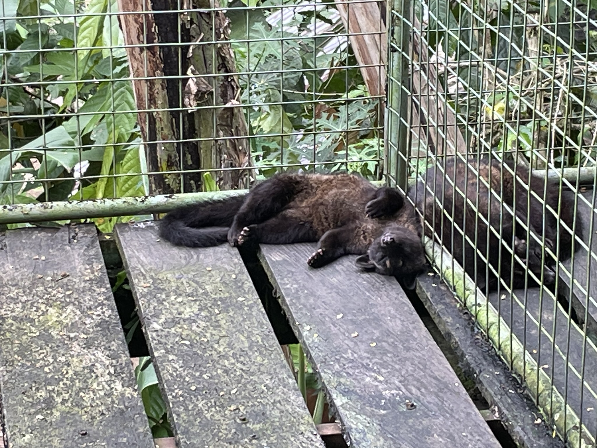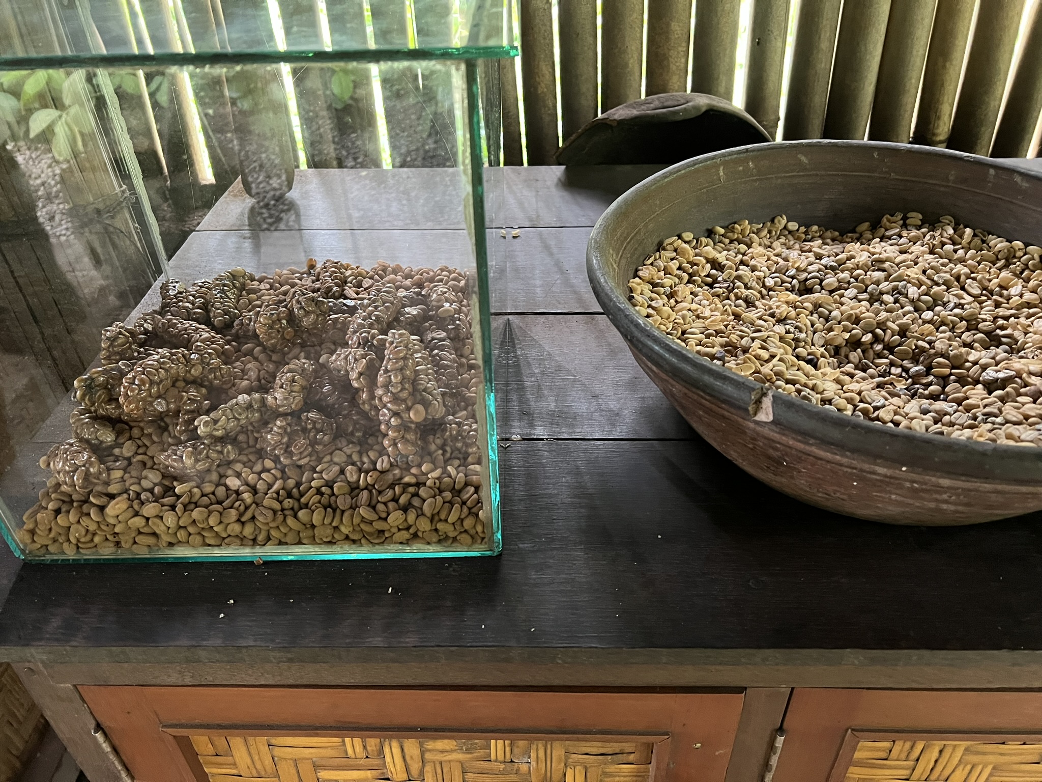 På området finns många individer av Luwak. Det är ett djur som äter kaffebönsfrukterna. Själva kaffebönan går dock rakt igenom kroppen och kommer ut i andra änden. De kaffebönor som passerat hela systemet lär bli ett fantastiskt gott och exklusivt kaffe när bönorna tvättats och rostats. De visade oss också hur hela kaffetillverkningsprocessen ser ut