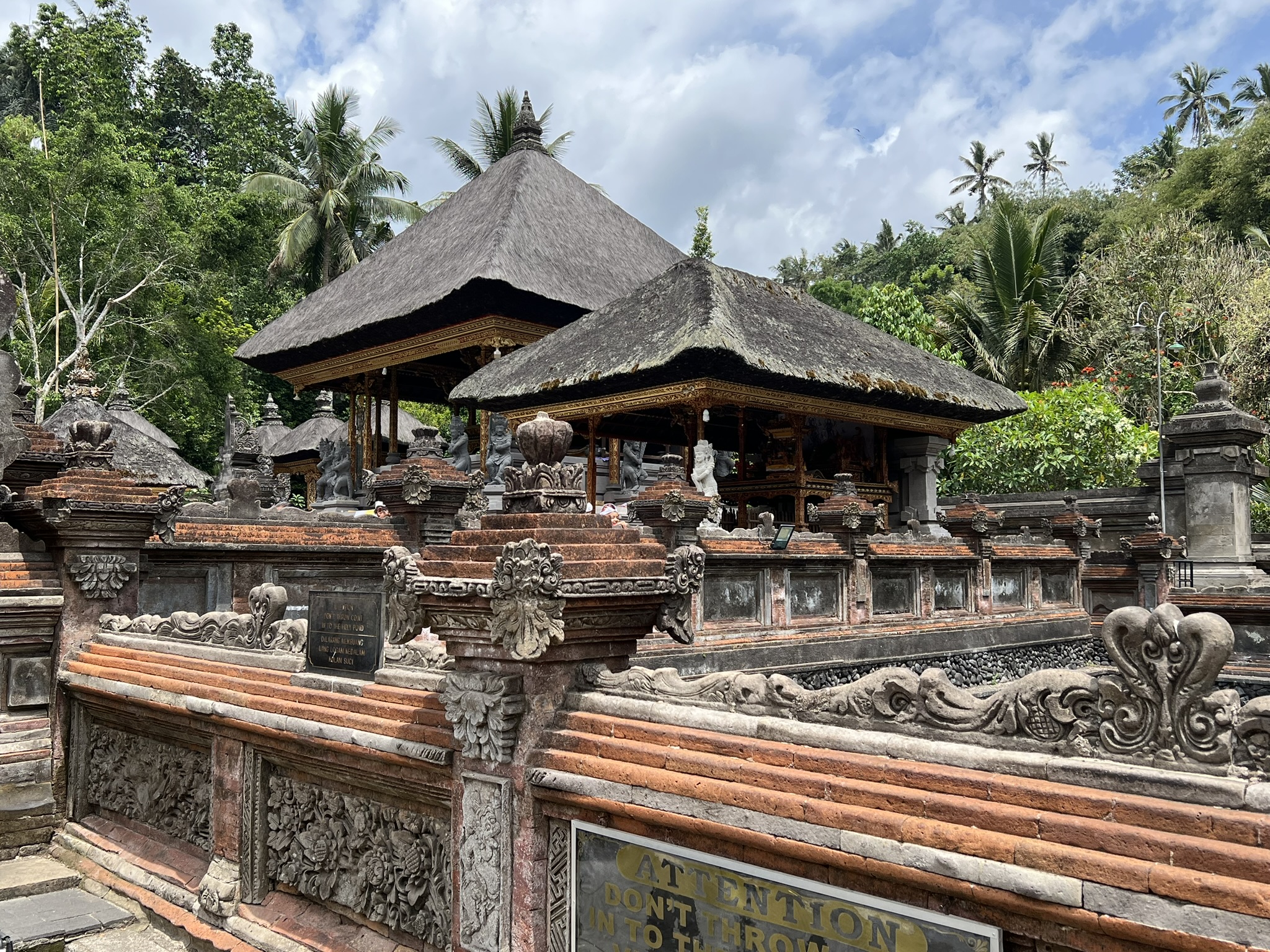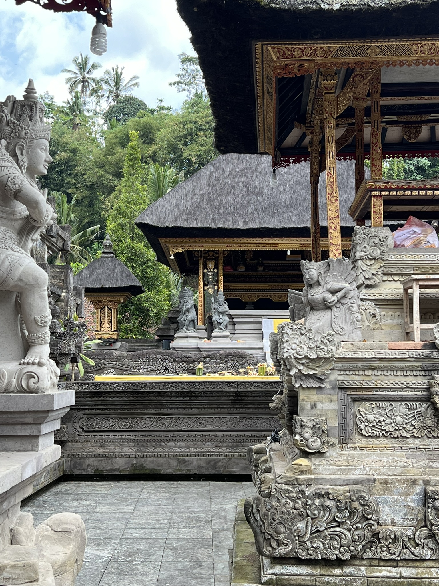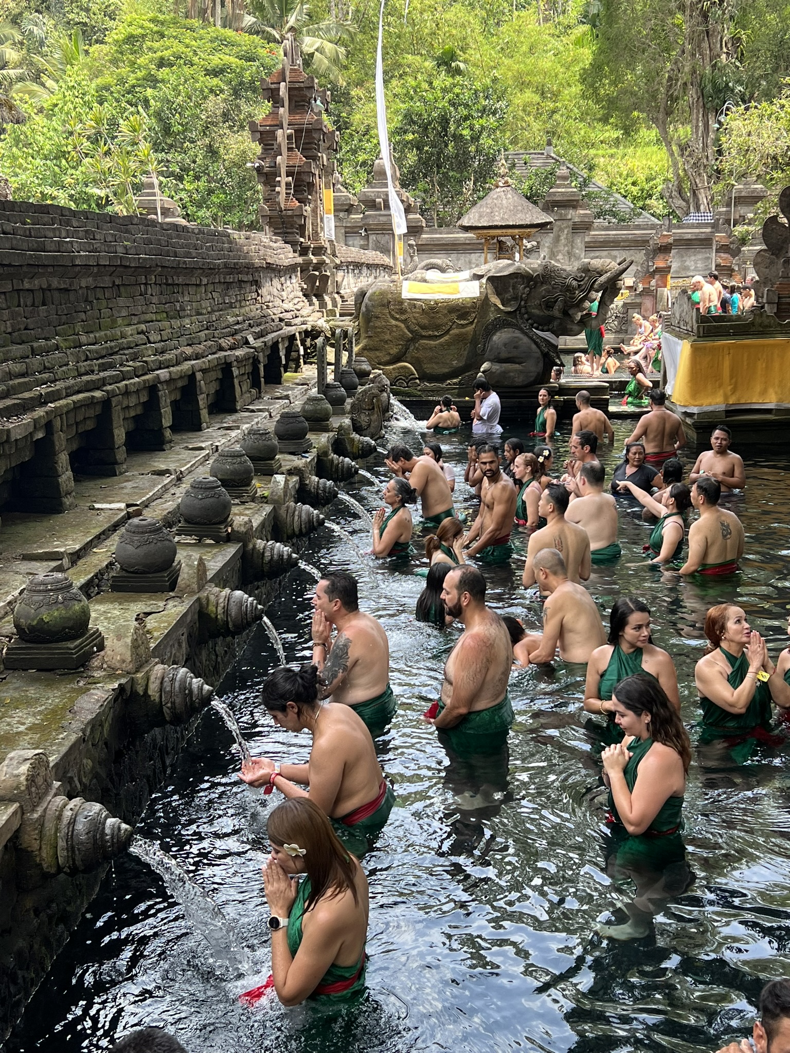 Här på tempelområdet fanns också Balis mest kända källor med heligt vatten. Man klär sig i speciella saronger, kliver i och låter vattnet skölja över huvudet samtidigt som man ber om att till exempel få bättre sömn. Det lär hjälpa mot en massa andra saker också. Det var en lång kö av människor som väntade på att kliva i vattnet. Det lär också vara extra verkningsfullt nu när det närmar sig fullmåne. Eftersom det var så lång kö lät vi bli att kliva i vattnet denna gång. Putu lovade dock att han kunde ta med oss en annan gång när det var mindre folk…