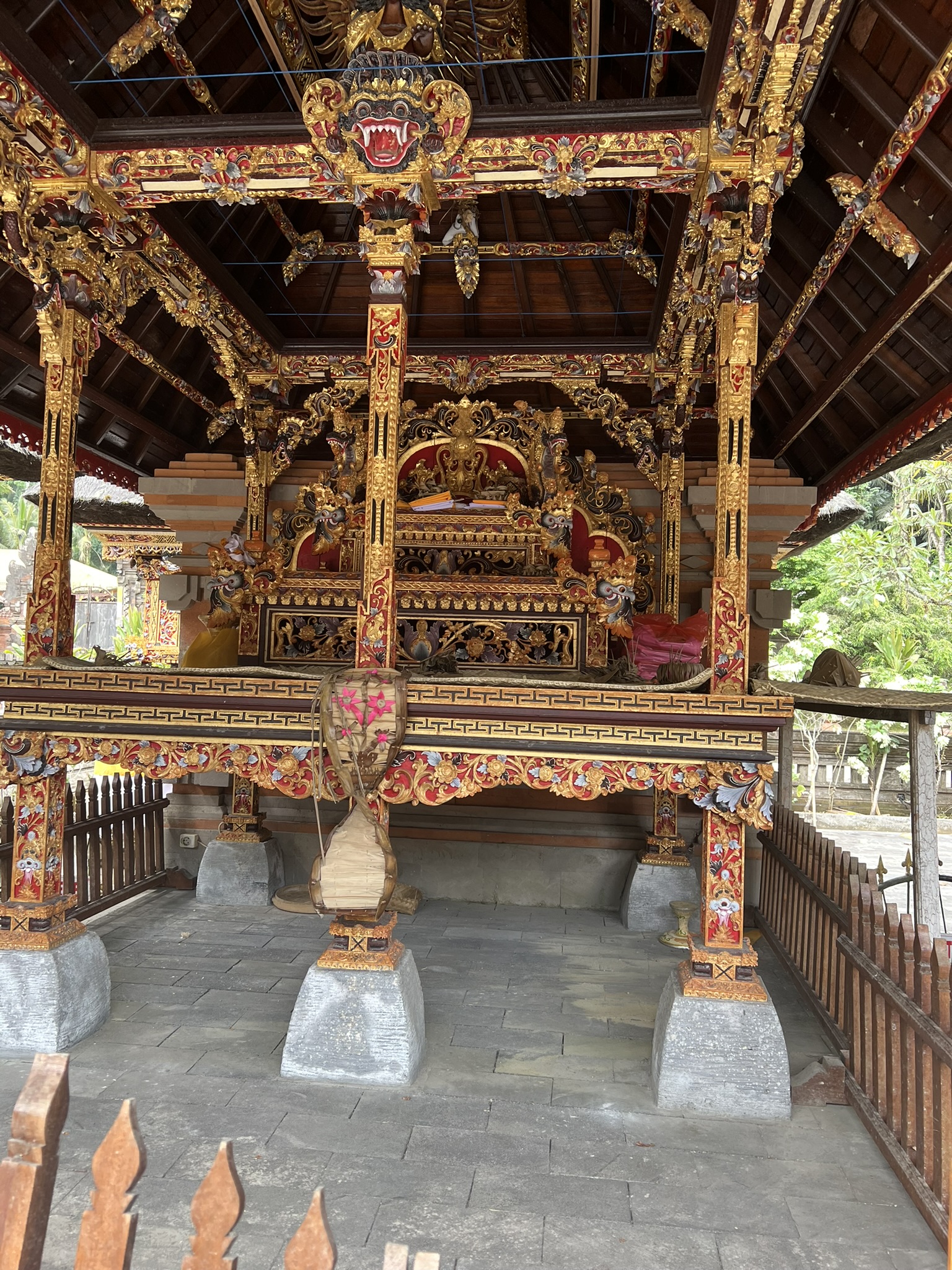 Putu berättade att det fanns speciella ställen att be på, dit fick vi inte gå. Det finns även ställen för att äta och sova en stund för att vila upp sig eftersom det tar flera timmar av bön under ceremonierna.