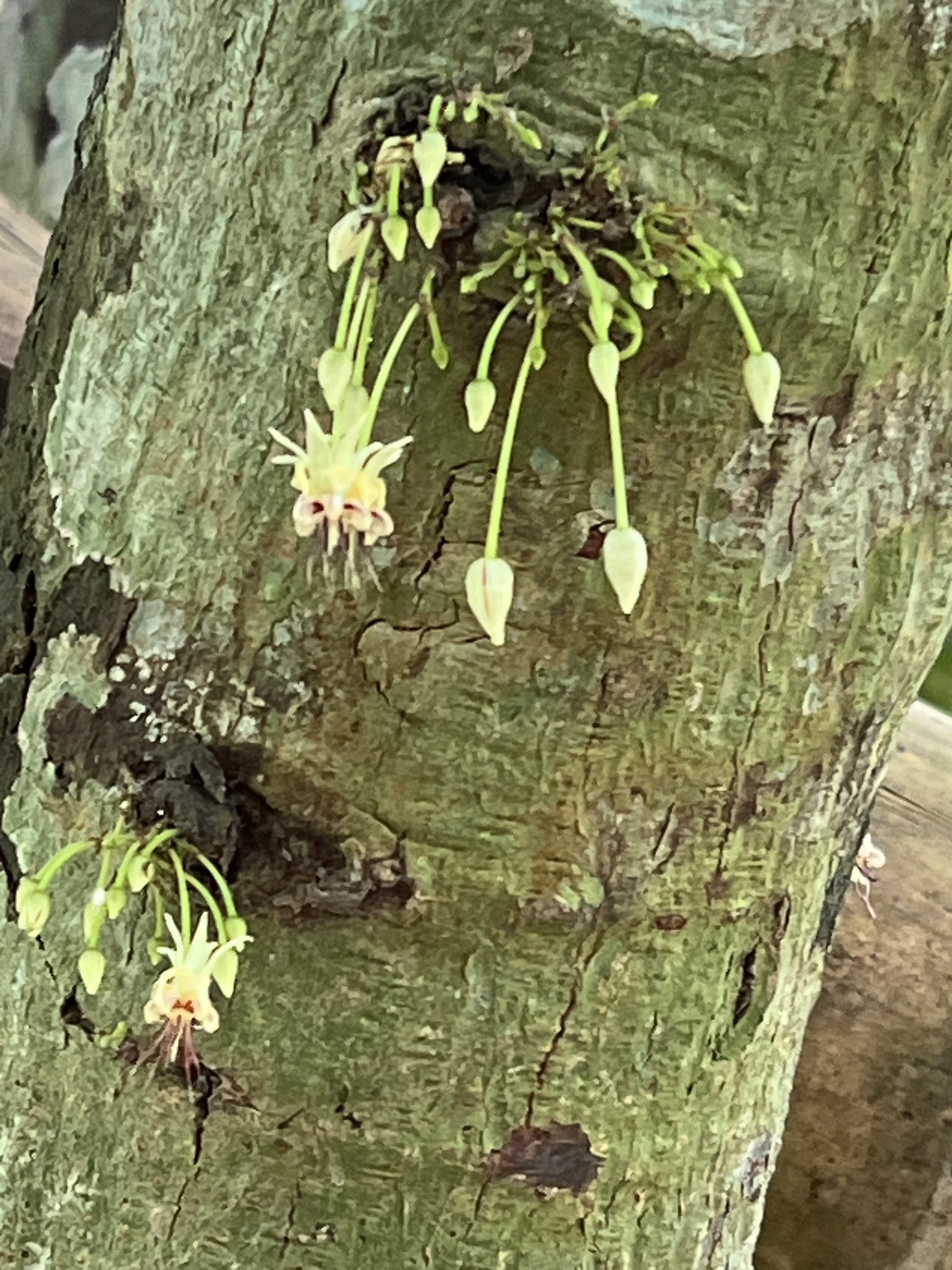 Nästa stopp låg endast en kort bit från lunchrestaurangen. Det var en kaffeodling som också hade flera inhemska trädsorter som vi kunde titta på. Det roligaste trädet var kakao. Jag hade ingen aning om att blomklasarna satt direkt på stammen eller på de tjocka grenarna. Det såg märkligt ut med den stora kakaofrukten som hänger direkt på stammen.