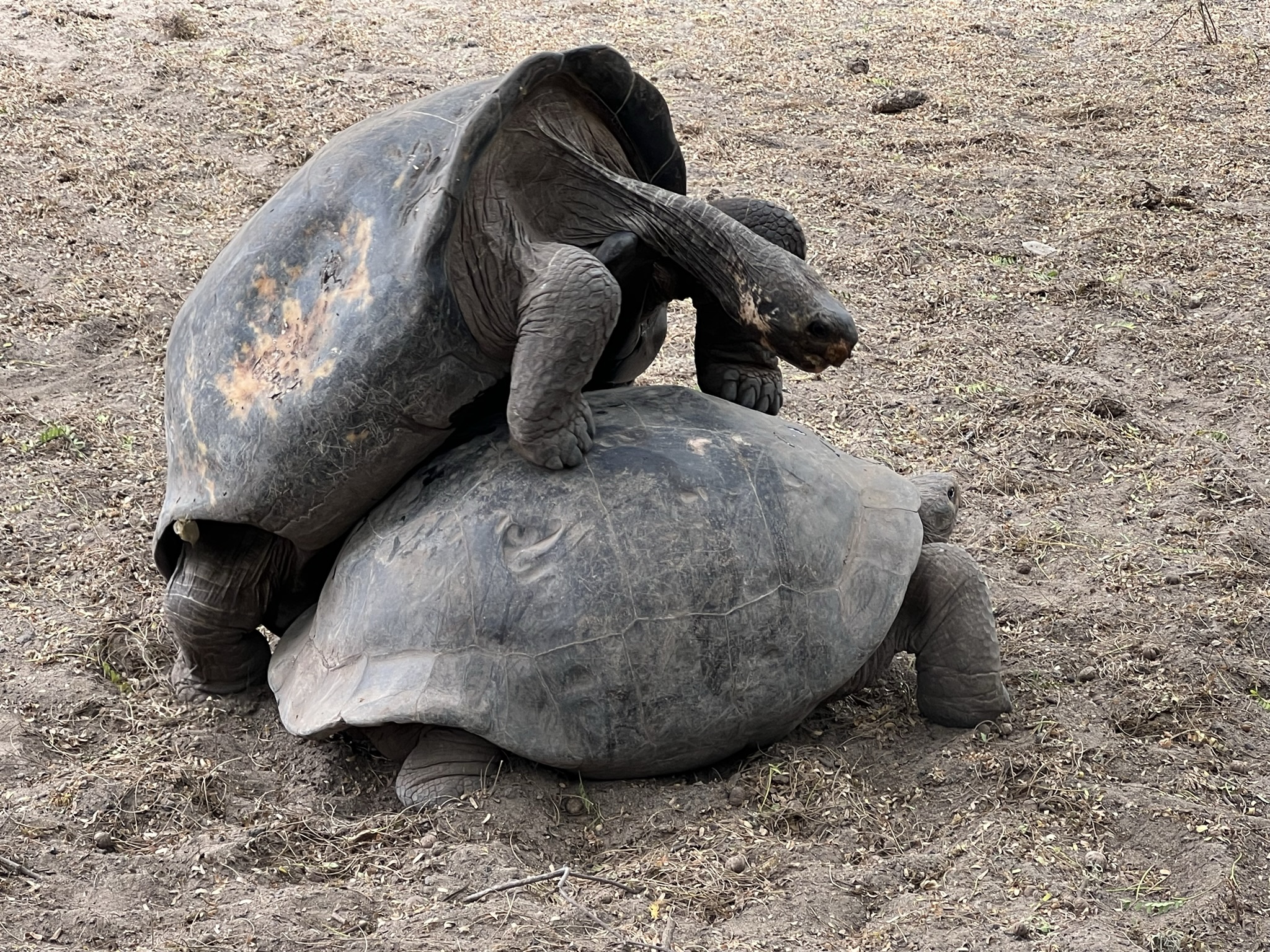 Vi kom sedan lagom till de stora sköldpaddorna för att se ett par av dem ha ”Happy hour” som guiden kallar det. Det såg tungt och bökigt ut med det där stora, tunga skalet!