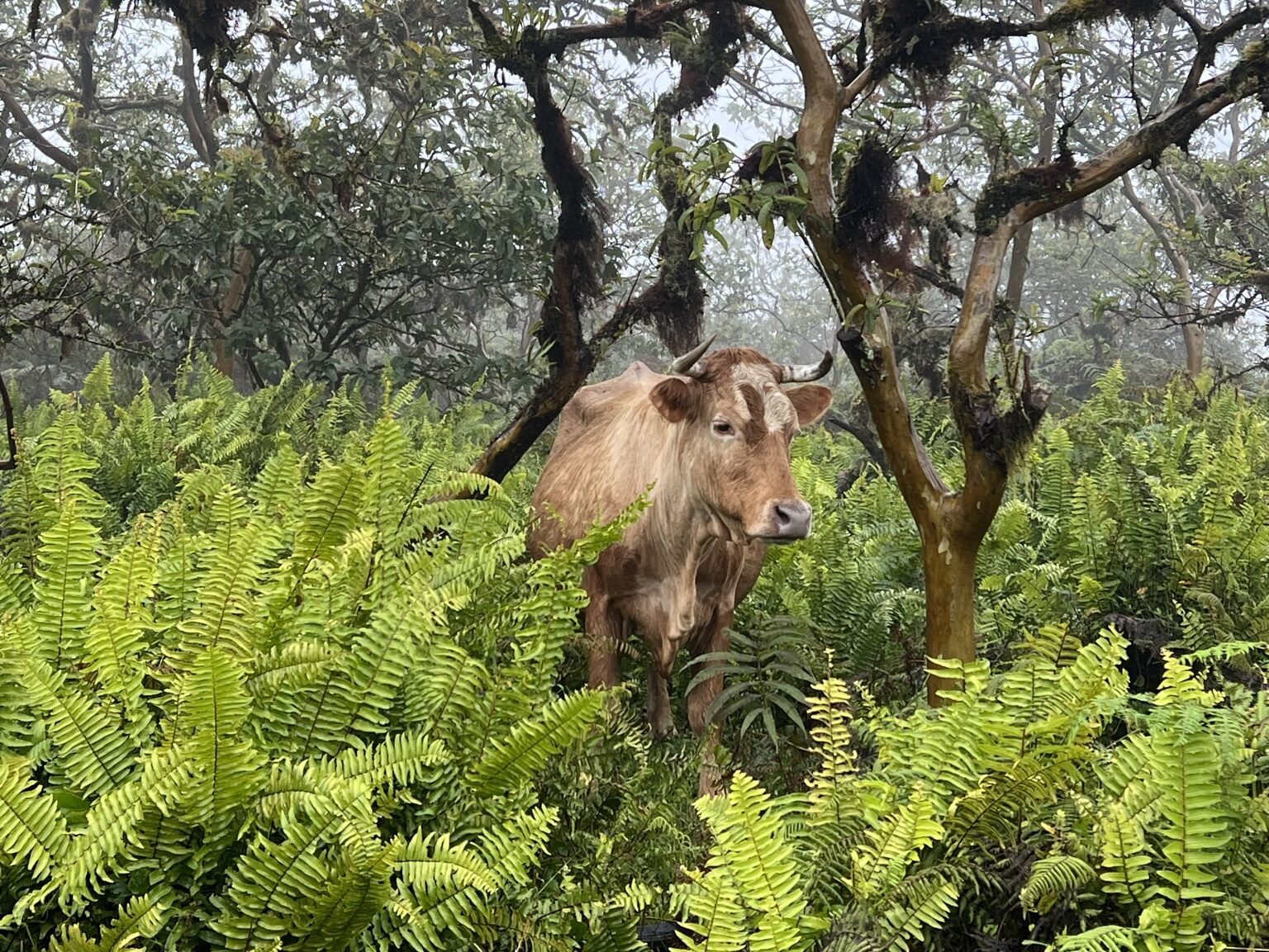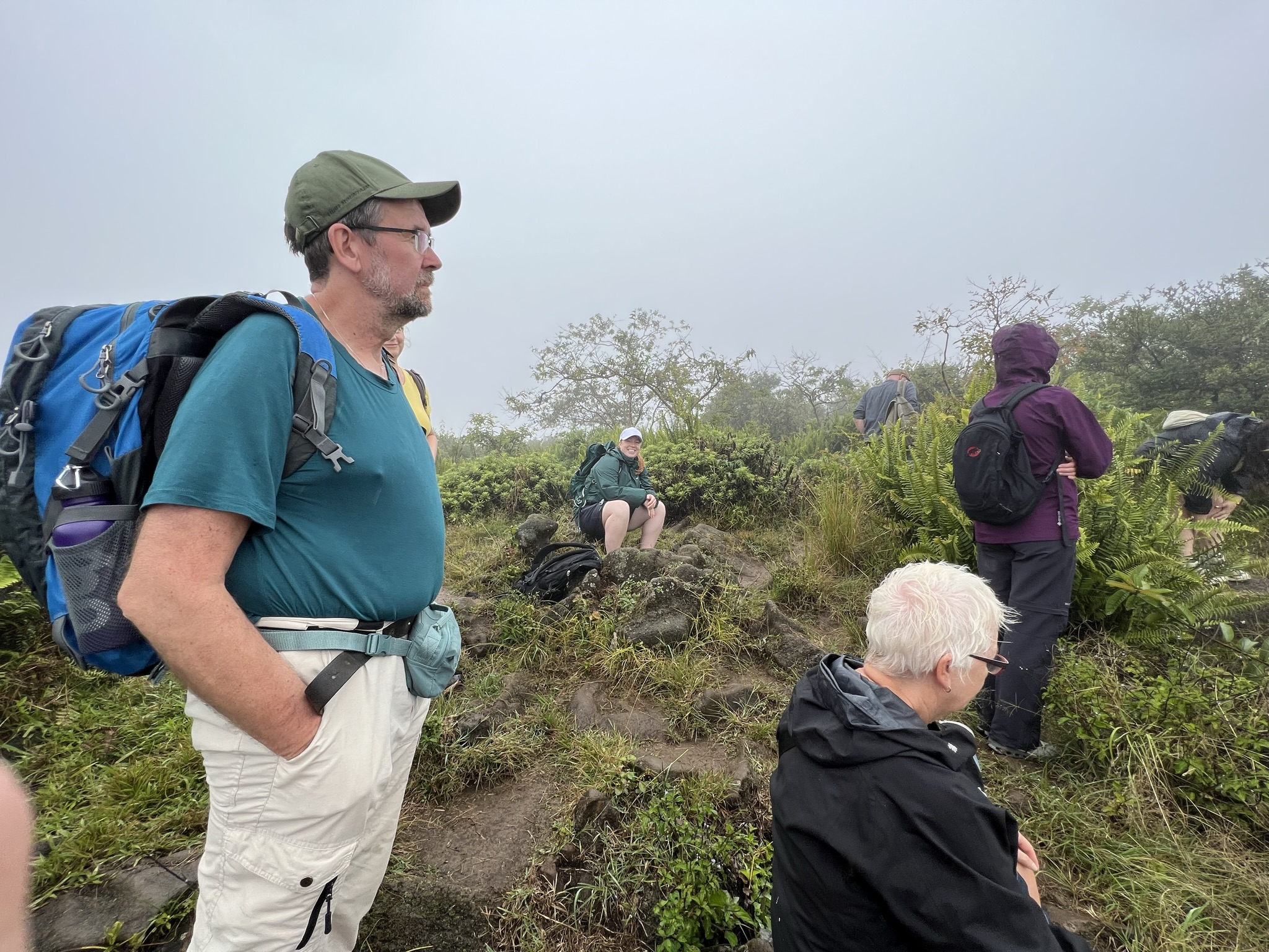Eftermiddagens aktivitet var en fyra kilometer lång vandring upp till Sierra Negra, den största vulkanen på ön. Så här års kan det vara ganska regnigt till och från och idag var det dessutom ganska tät dimma. Efter en lerig vandring upp till toppen, en stigning i höjd på ca 180 meter, konstaterade vi att vi inte såg något alls. Bara en tät vit mur av dimma. Haha, en liten besvikelse efter den lilla promenaden!