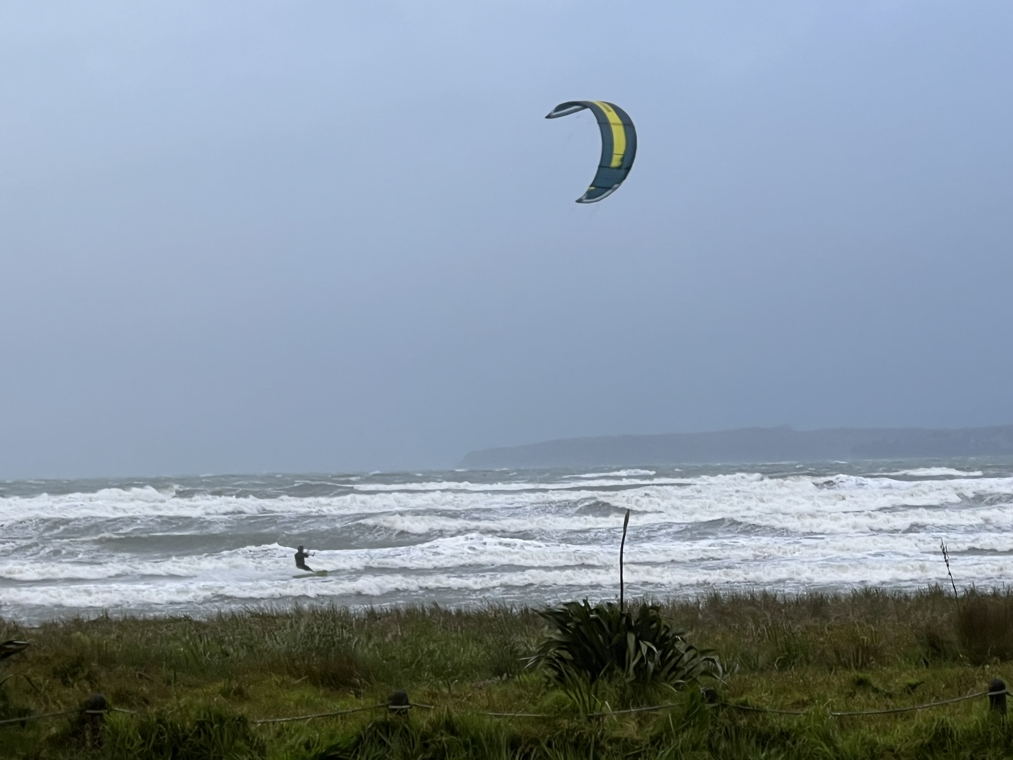 Oj, oj, oj vad det har blåst i natt! Det skulle vara som värst runt midnatt och därefter minska men det blåser fortfarande så bilen gungar och det är svårt att gå rakt ute. På morgonpromenaden till toa såg jag några tokstollar som kitesurfade på de upprörda vågorna. Galet, det såg helt livsfarligt ut!