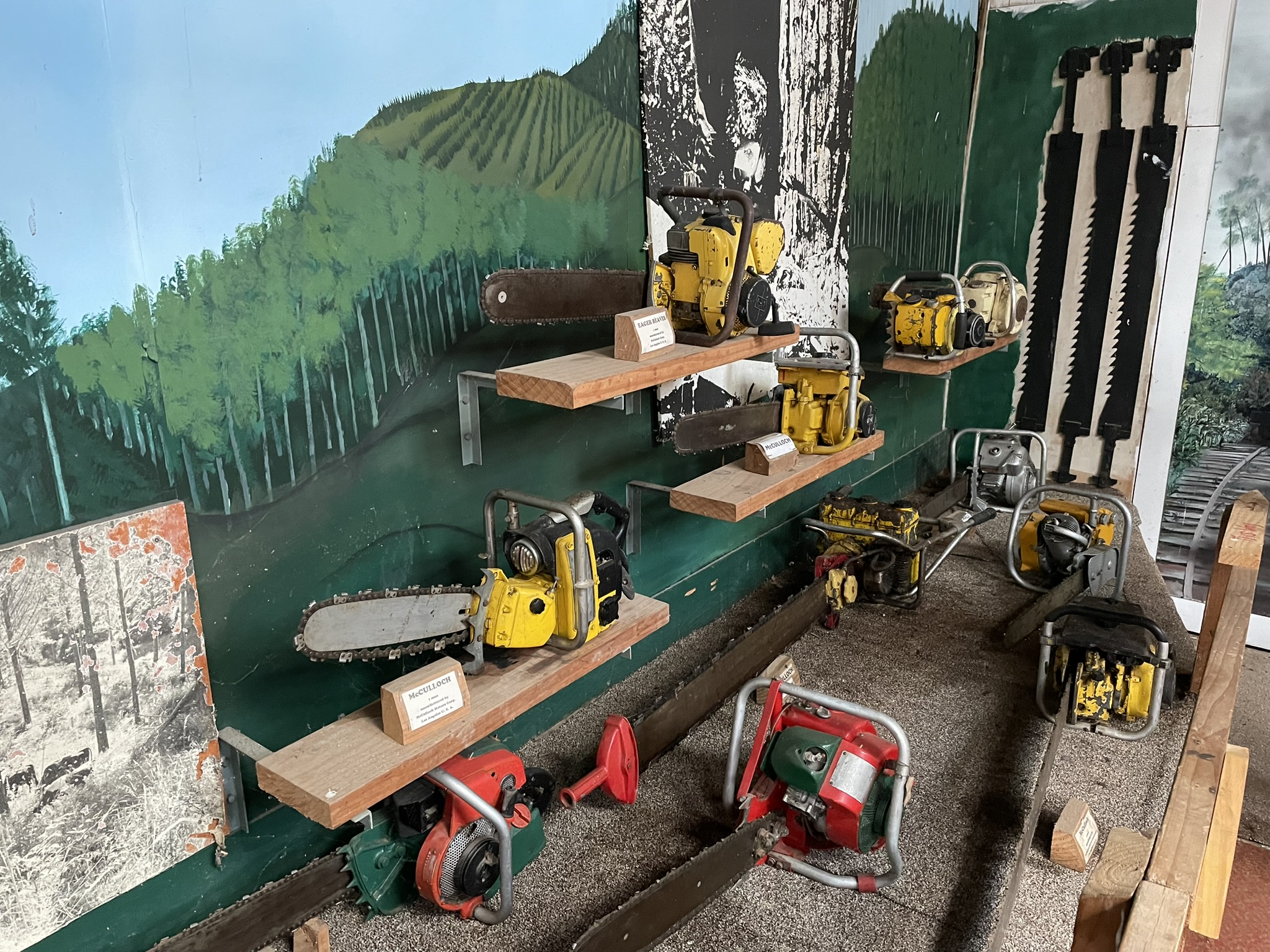 Självklart fanns också en hel massa motorsågar, stora timmersågar och allehanda stora maskiner som användes vid skogsavverkning och tillverkning av plankor. Det fanns ett helt litet hus bara för yxor och den mängd medaljer som vunnits i huggartävlingar. Tror man var tvungen att vara tuffare förr!