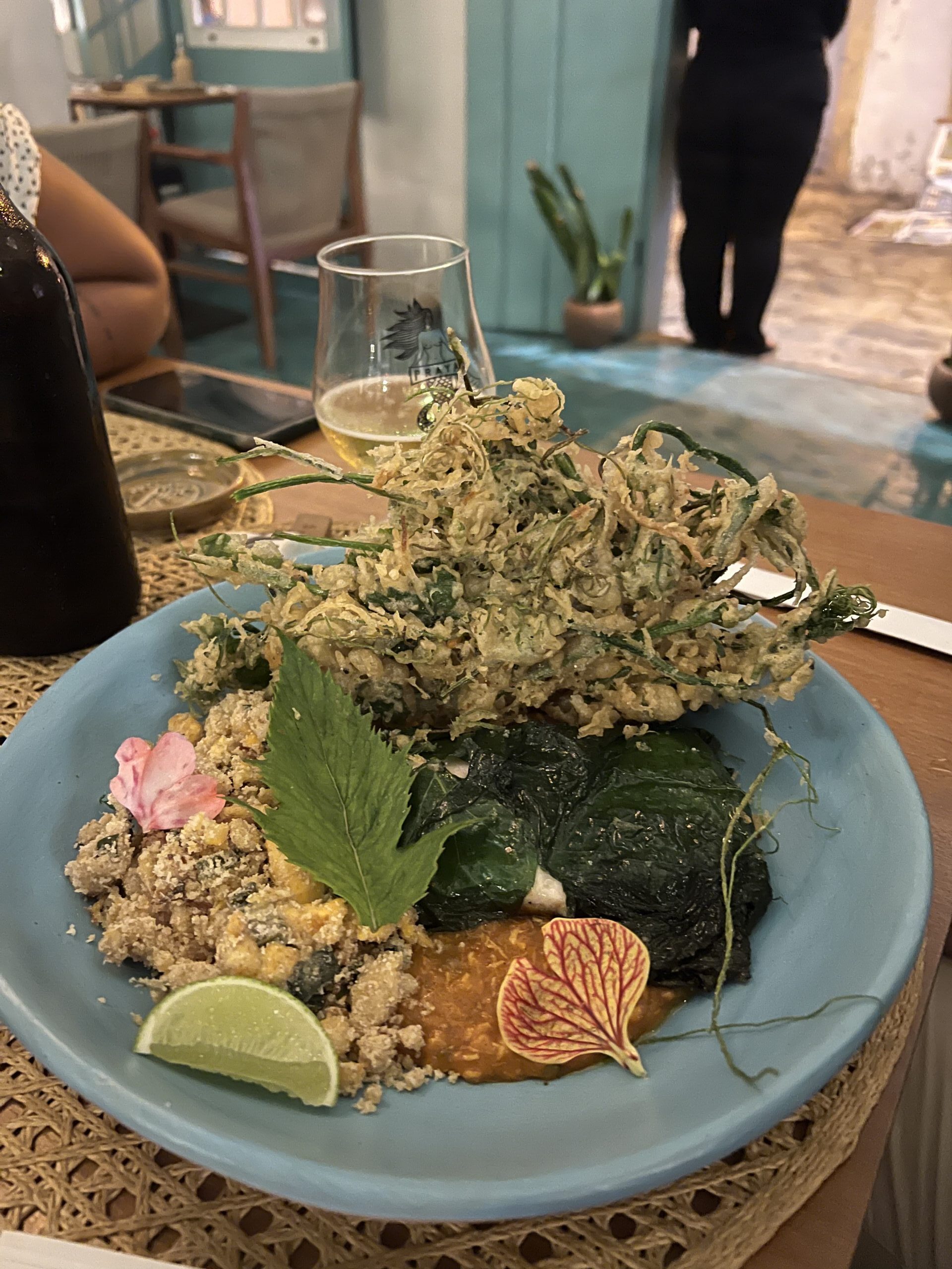 Thaimiddag med Caipirinha i väntan på övriga.