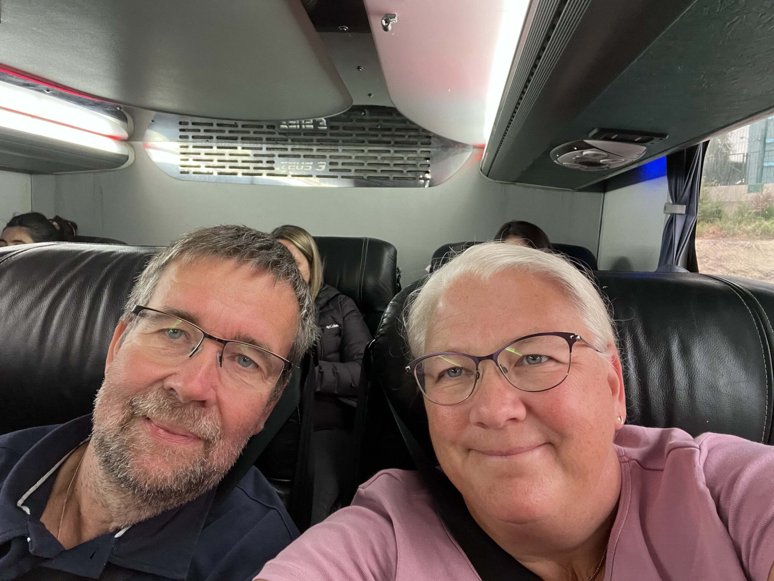 Resan gick smidigt. Man satt superbekvämt i breda säten. Bussen var väl lika stor som hemma och hade tre säten i bredd per rad, vilket väl säger något om hur stora de var.