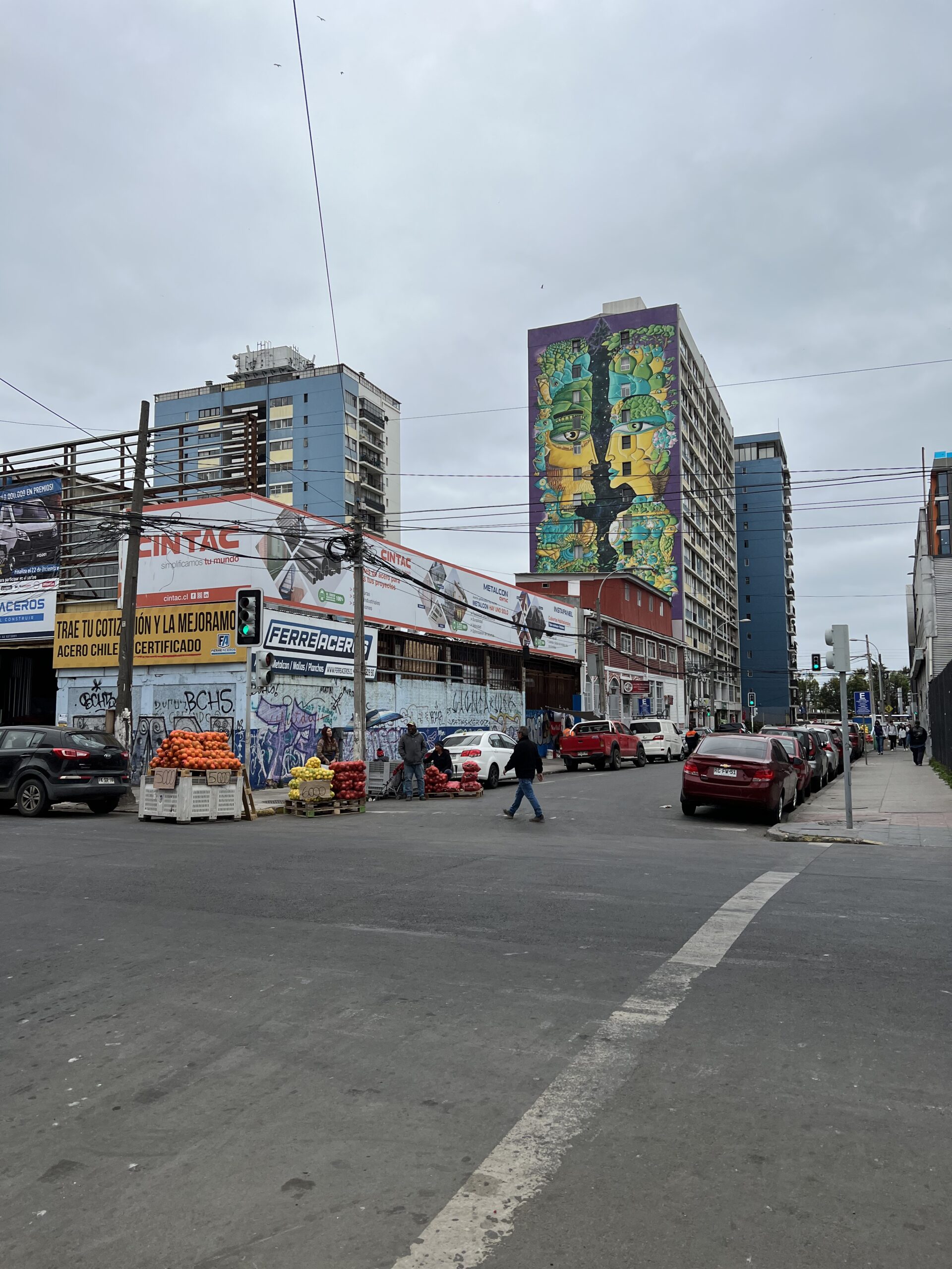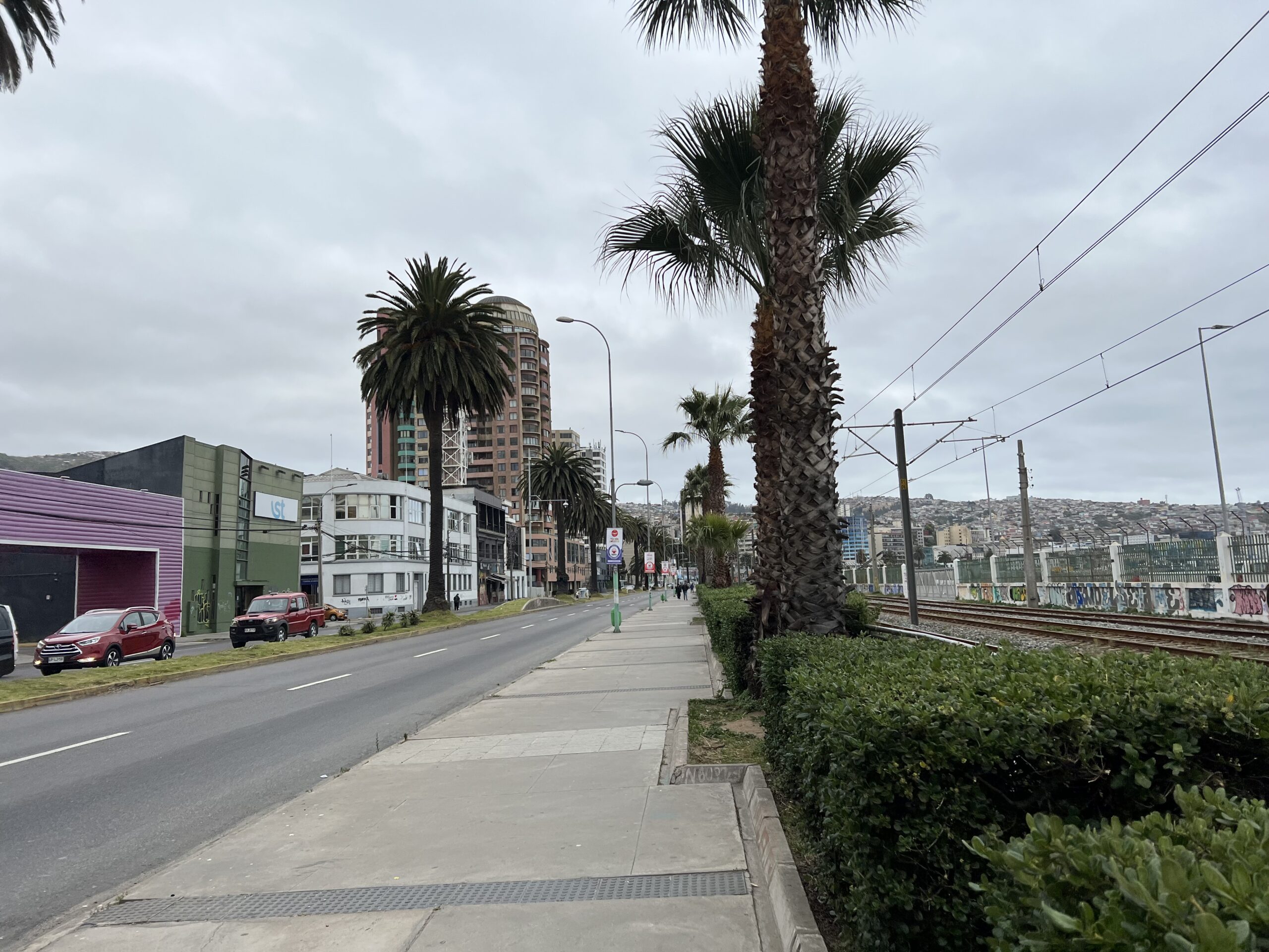 Knappt två timmar senare klev vi av i Valparaiso. Första intrycket var att det var rejält mycket mer slitet här än i Santiago. Riktigt smutsigt och husen liknade mer de vi sett i Quito. Vi började vandra bort mot hotellet några kilometer bort. Passerade en marknad där folk sålde allt från gamla använda husgeråd, tvättmedel, fisk och frukt. Detta tillsammans med folk som sov på gatan gav ett lätt stökigt och oroande intryck tyckte jag.