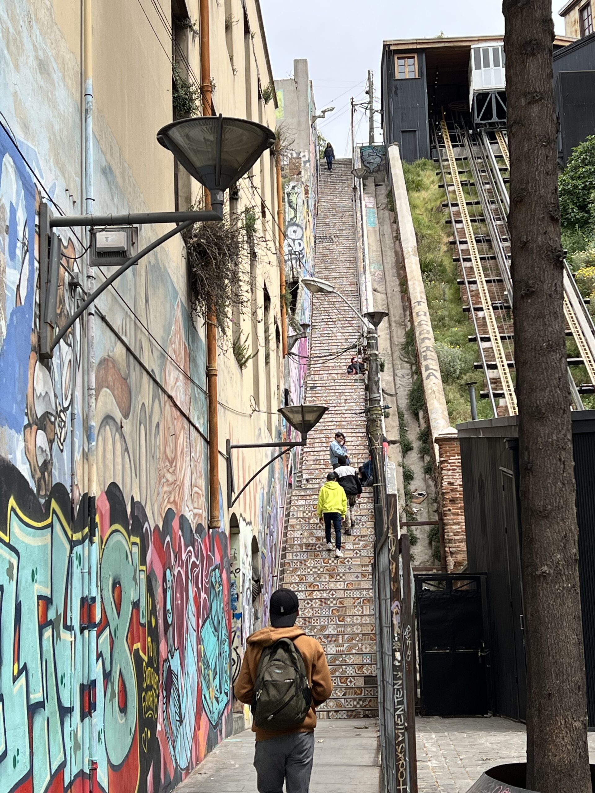 Vi vandrade vidare och tittade på en av de hissar som finns mellan gatunivåerna i stan. Det gick en brant trappa bredvid men den gjorde väl bara hissen mer lockande. Vi fortsatte dock vidare efter strecket på kartan och började ta oss uppåt i staden.