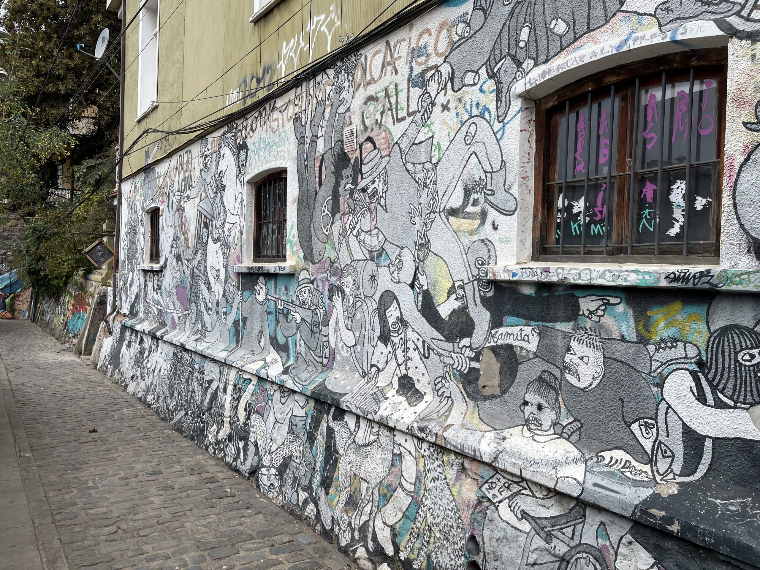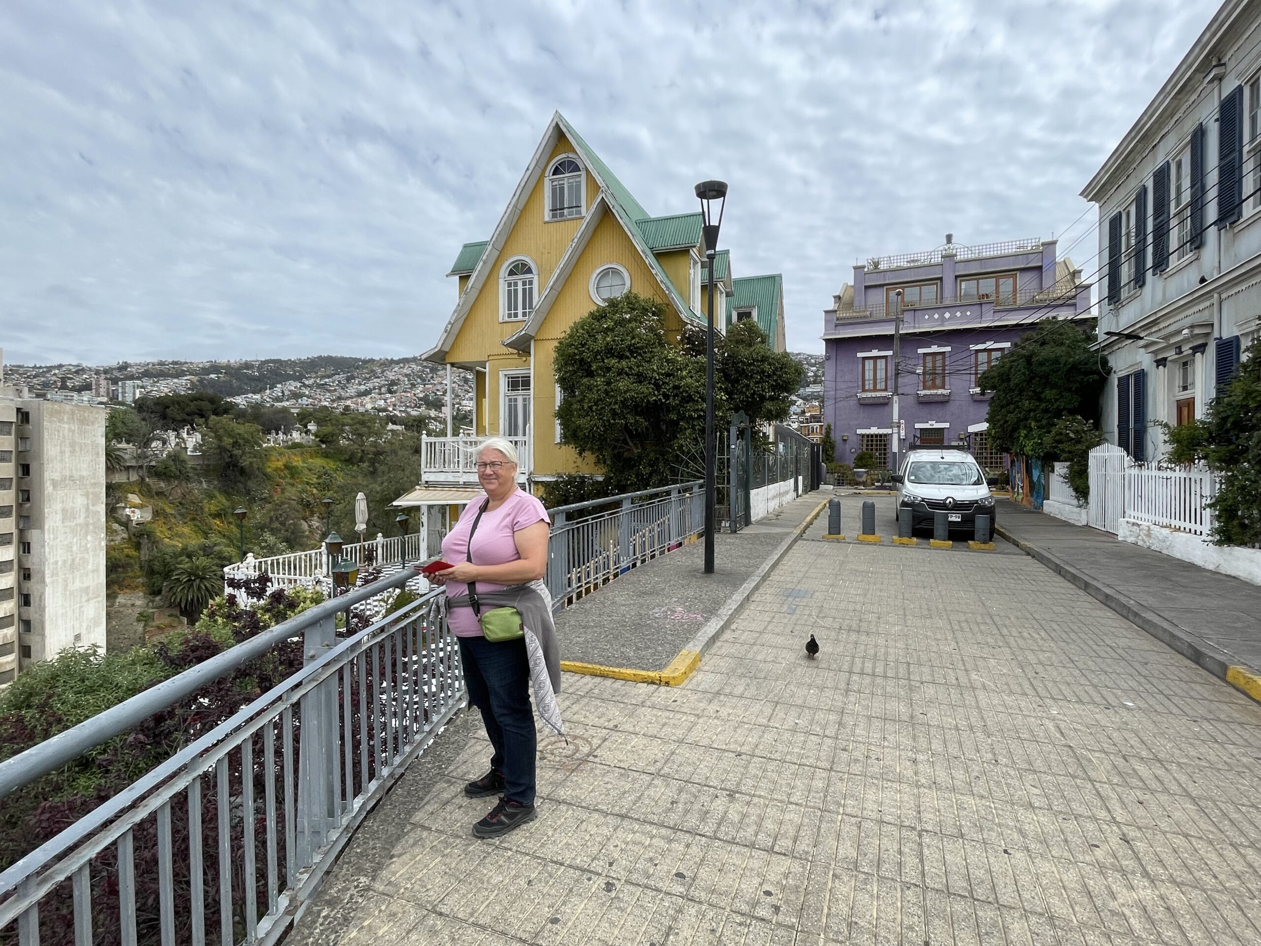 Valparaiso ligger i en vidsträckt bukt med rätt rejäla berg runt hela bukten. Det gör att staden klättrar sig upp längs sidorna. Var man än vänder sig är det således hus av alla typer man kan tänka sig. Höga, låga, gamla och nya i allsköns alla färger. Det är svårt att ta in allt.