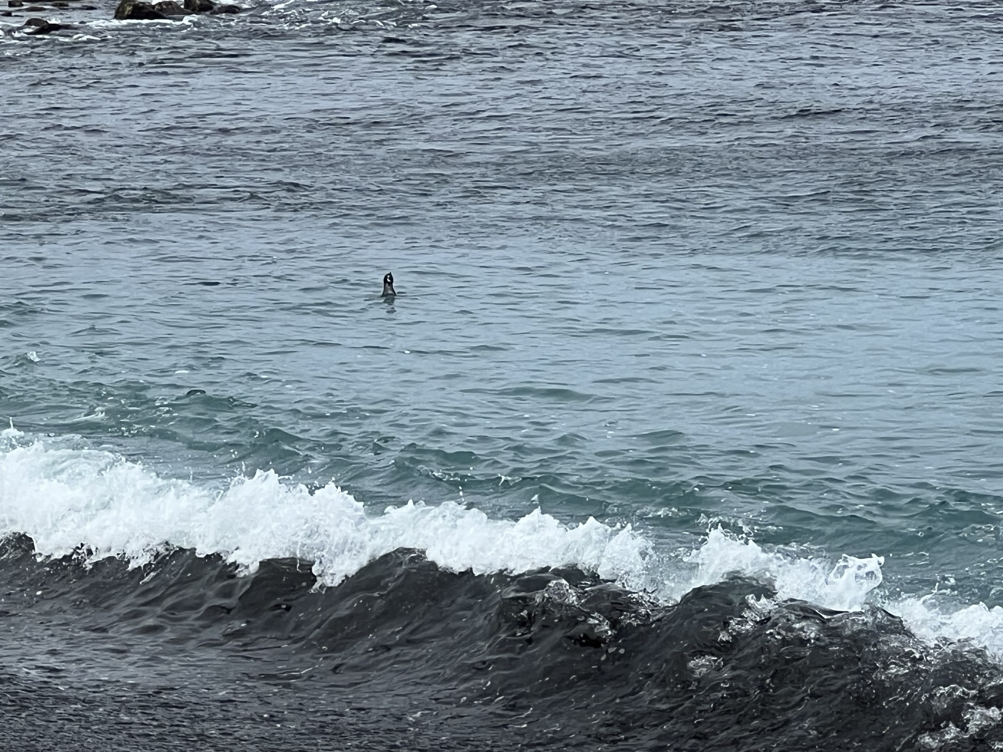 Efter nån dryg timme i detta paradis tog vi oss upp och då dök plötsligt Galapagospingvinerna upp igen. Guiden trodde det var samma som vi sett tidigare. Det är bara ett fåtal av dem som håller till vid Floreana. De jagade mat alldeles vid stranden och en av dem dök förbi precis framför en person som snorklade invid kanten.