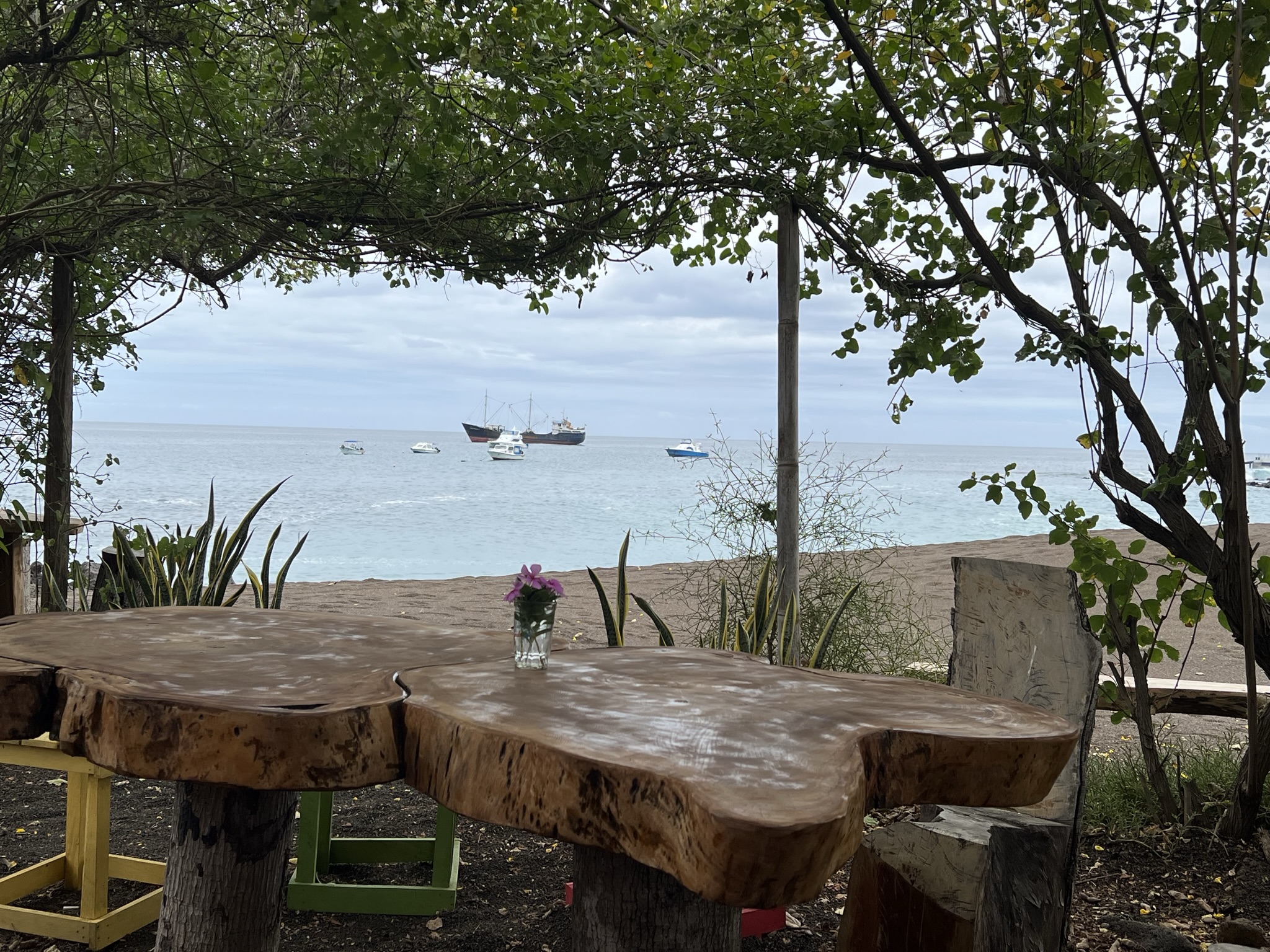 Efter det var promenaden slut och vi tog oss ner bryggan där vi också insåg att öns enda geocache fanns placerad. På så vis kunde vi sätta Galápagos och Ecaudor på kartan. Sedan tog vi oss till strandbaren för lite gott innan det blev dags för middag på ännu en ny restaurang. Ännu en riktigt god fiskmiddag.