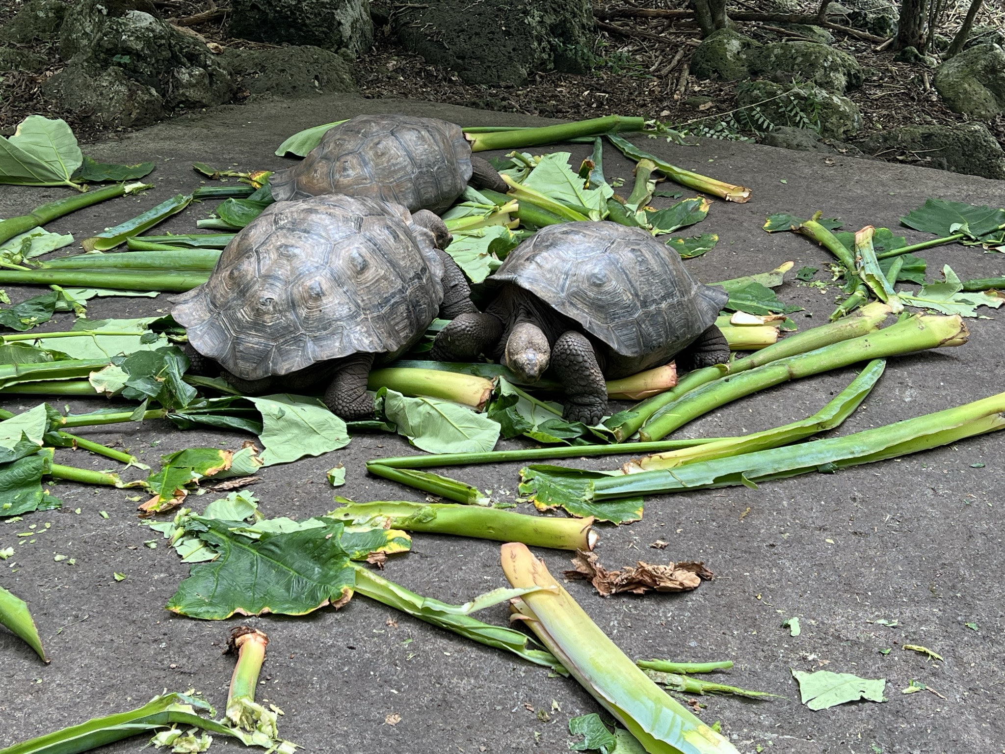 Vi följde en kort stig och kikade först på de sköldpaddor man snart ska släppa ut i det fria. Ännu bodde de i större inhägnader och fick mat regelbundet. Tanken är dock att de snart ska släppas fria.
