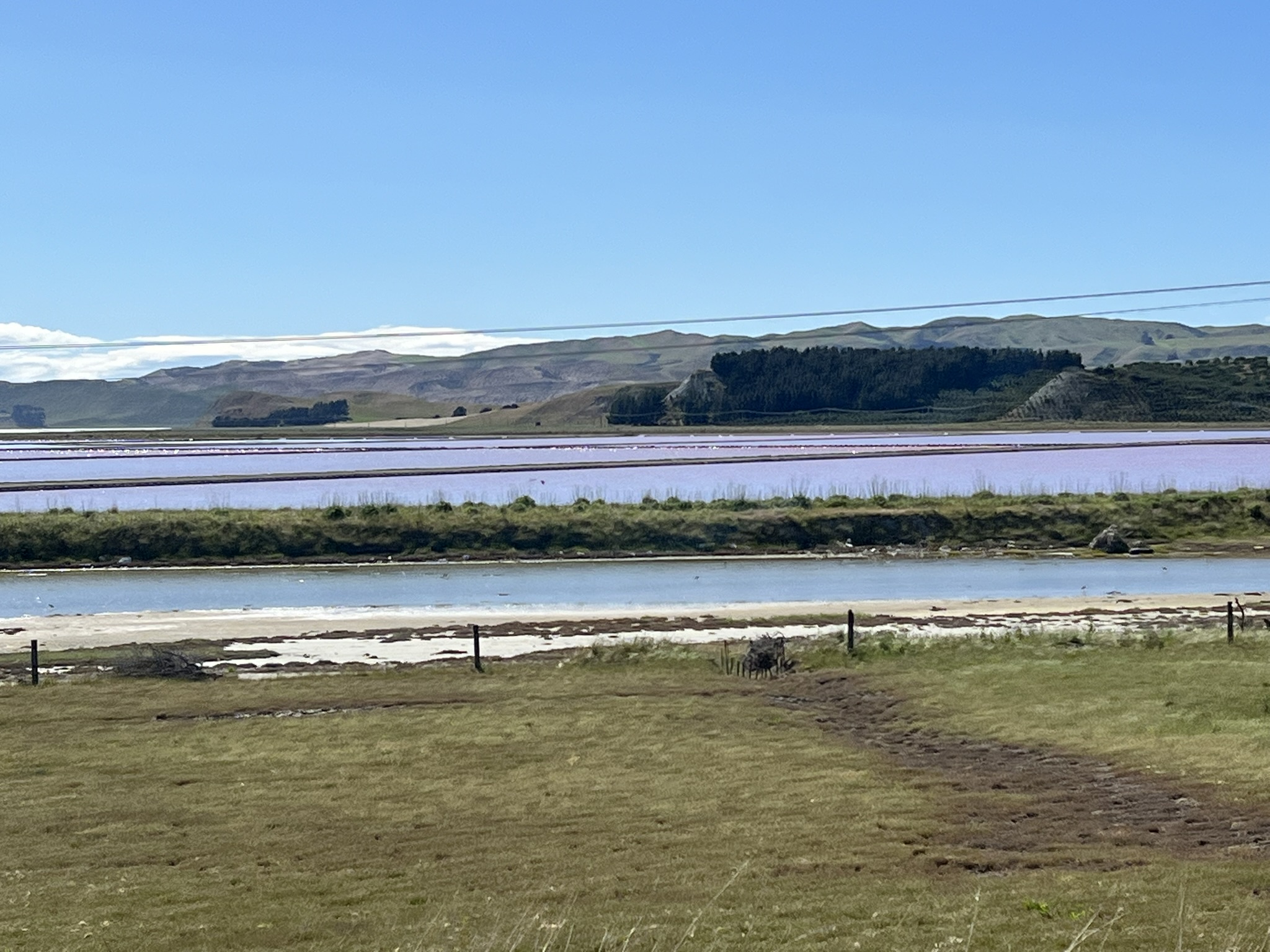 För att leta bra stopp använde vi idag google maps. Den förslog först att vi borde besöka ”Salt works” som första stopp. Vi gjorde ett allvarligt försök att stanna till men kom aldrig riktigt nära. Det fanns en underligt rosafärgad sjö som man nog ville se närmare på men det fanns ingenstans att stanna bilen vad vi kunde se. En saltfabrik, tror vi, dock att vi for förbi. Så hela området var nog rätt saltrikt.