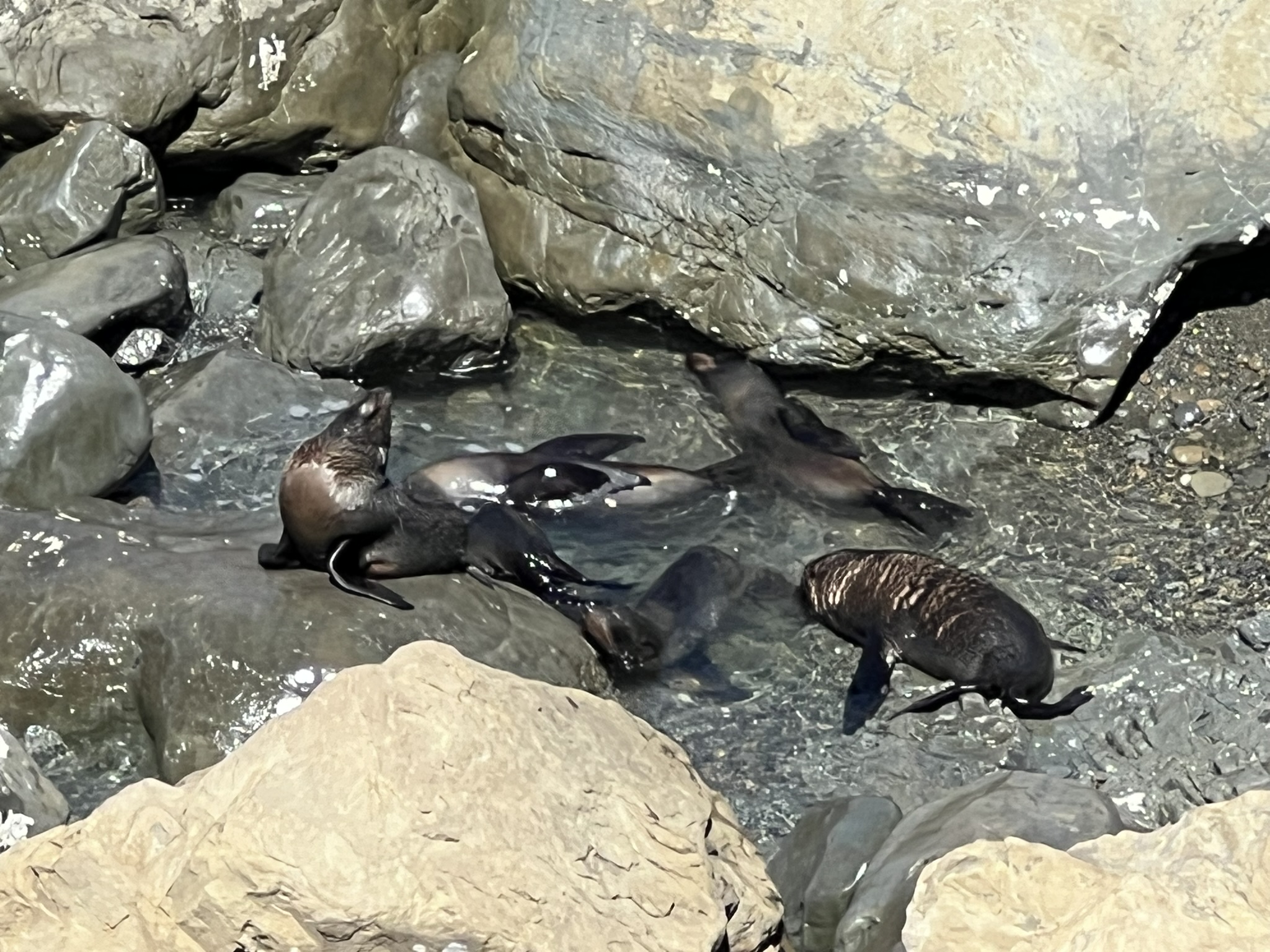 Vi loggade cachen och körde vidare längs kusten mot den utsiktsplats och sälkoloni som skulle ligga längre fram. På parkeringen var det fullt med bilar och människor som stod och kikade. Vi förstod snabbt varför. Jag har aldrig sett så många sälar på en och samma gång! Det var fullt av sälar var man än såg. Och dessutom var det fullt med små kutar som lekte runt i de små pölarna. Det var en syn som jag kommer bära med mig länge.