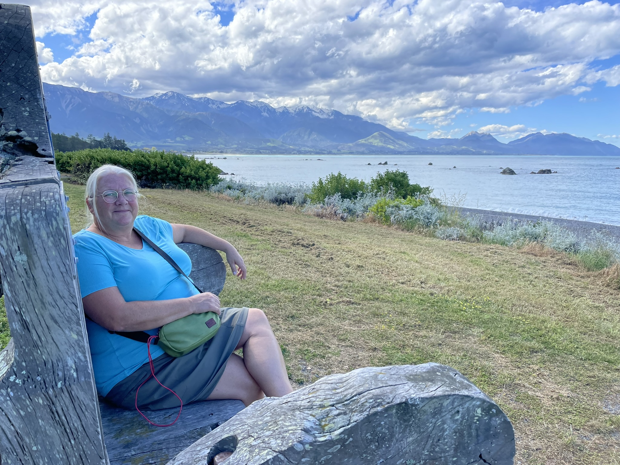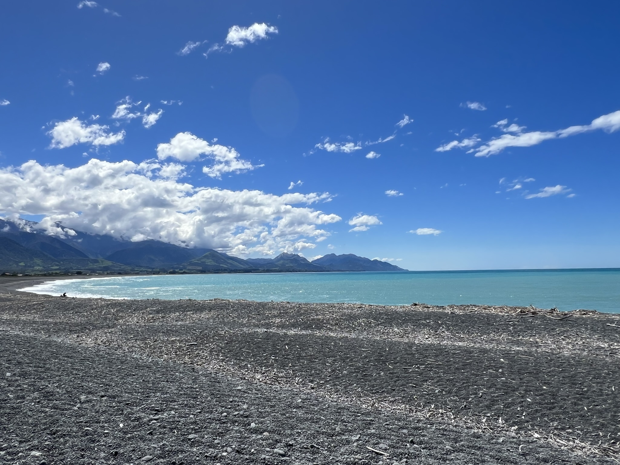 För att nyttja dagen som till max (imorgon talades det om sämre väder igen) for vi iväg med tanken att turista mycket och köra lite. Vi styrde söderut längs ettan längs en helt otroligt vacker kuststräcka. Höga, snötäckta berg, klarblått vatten och vidsträckt vy. Det var så här vi mindes Nya Zeeland!