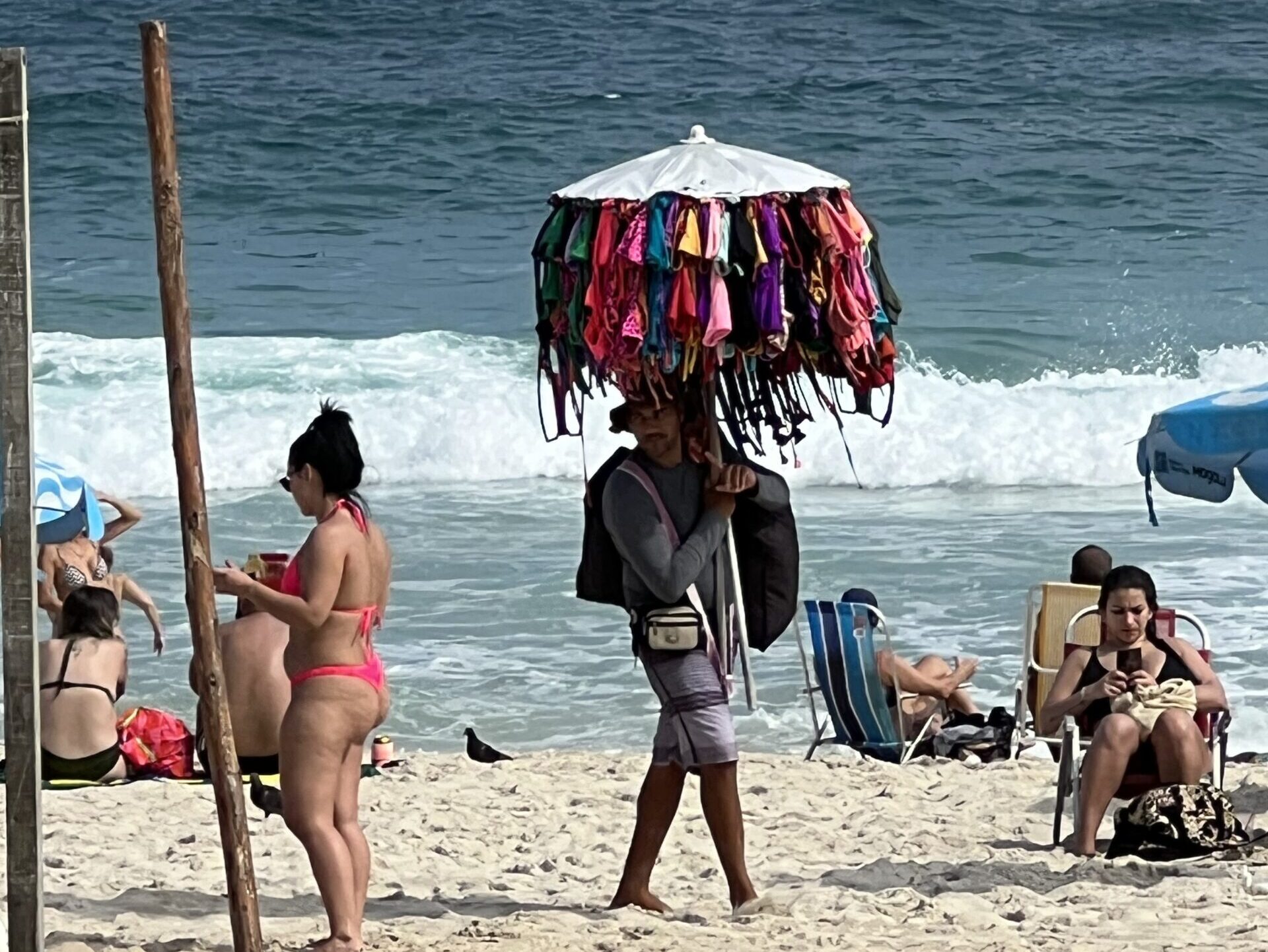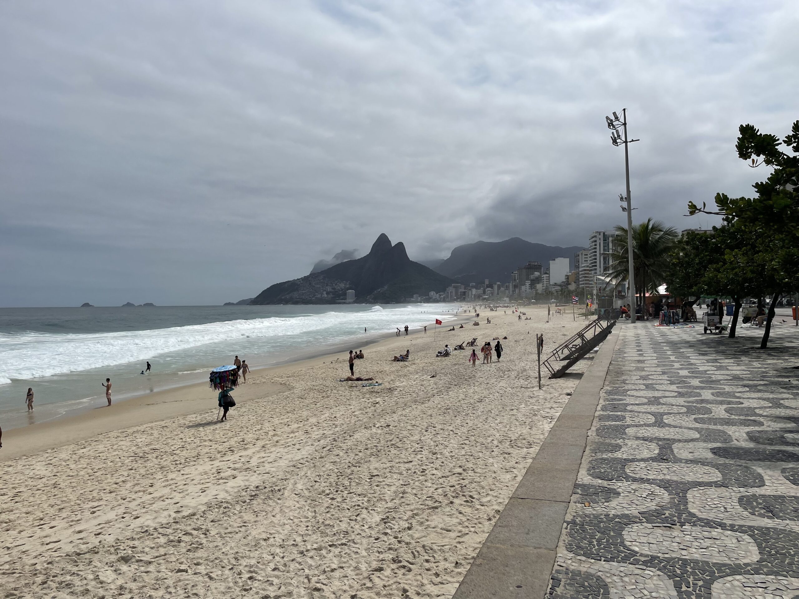 Vi stod nu där man kommer ut vid Ipanemas strand om man kommer från Copacabana. Framåt, åt vänster breder hela Ipanemas drygt tre kilometer långa strand ut sig. I slutet av stranden ligger stadsdelen Leblon och cirka en tredjedel av stranden är således inte Ipanema om man ska vara petig.