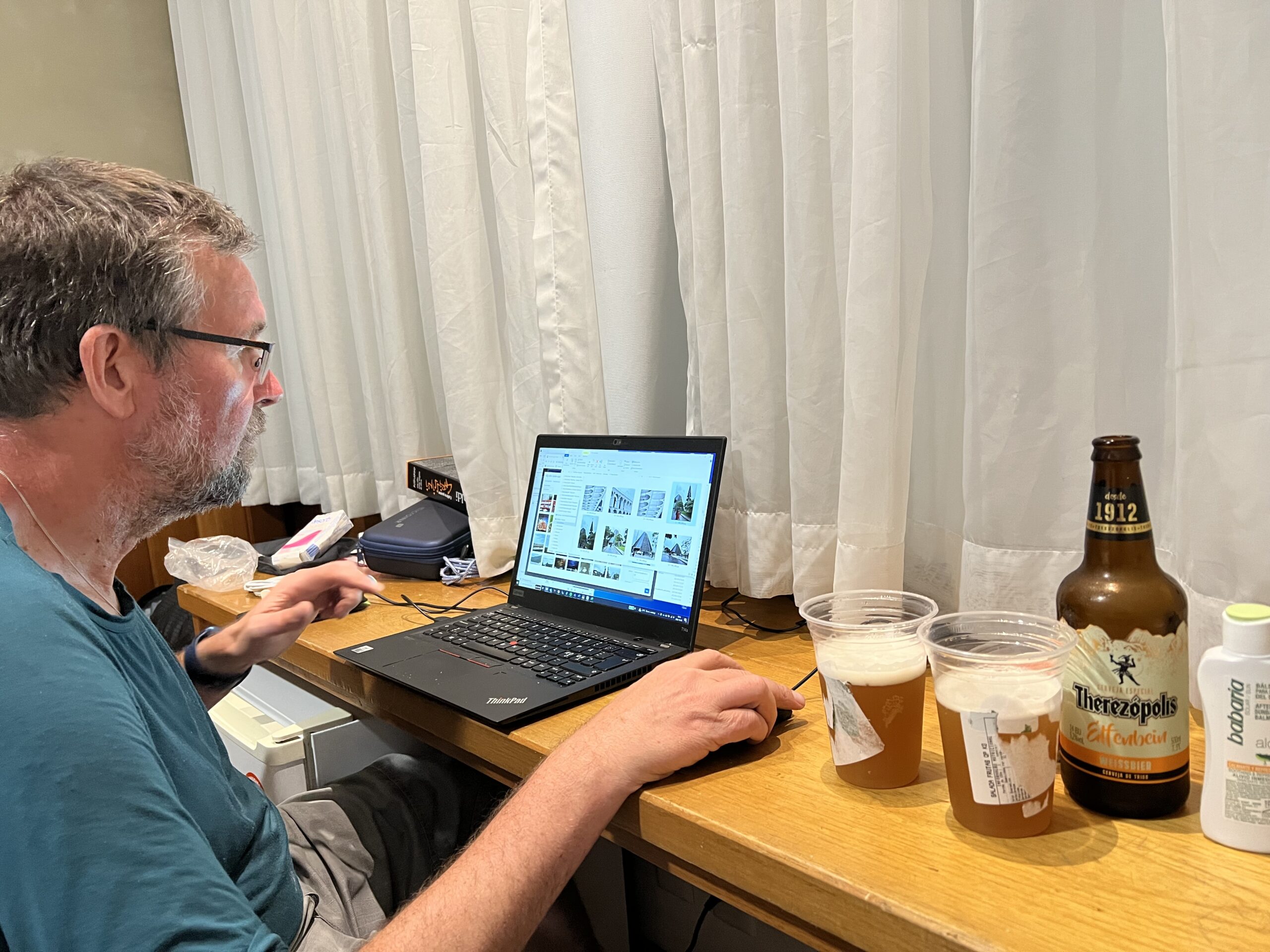 Att välja bilder tar tid. Notera också de snygga ölglasen vi hade.