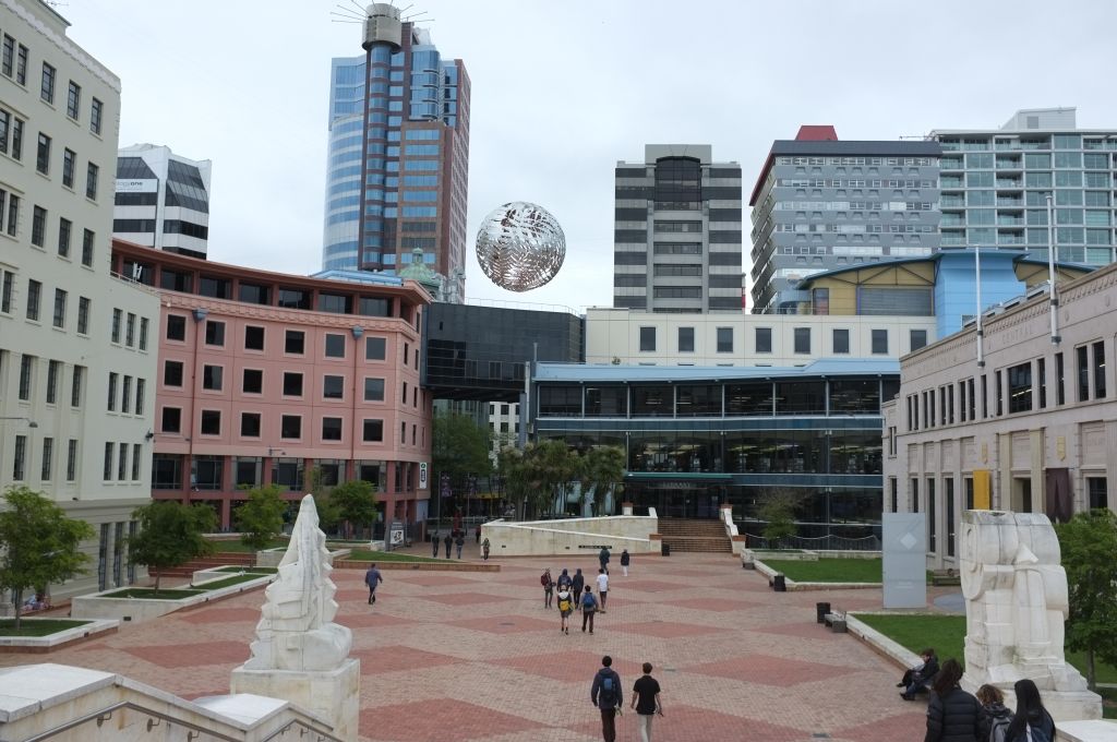 Civic square. På höger sida syns stadsbiblioteket.