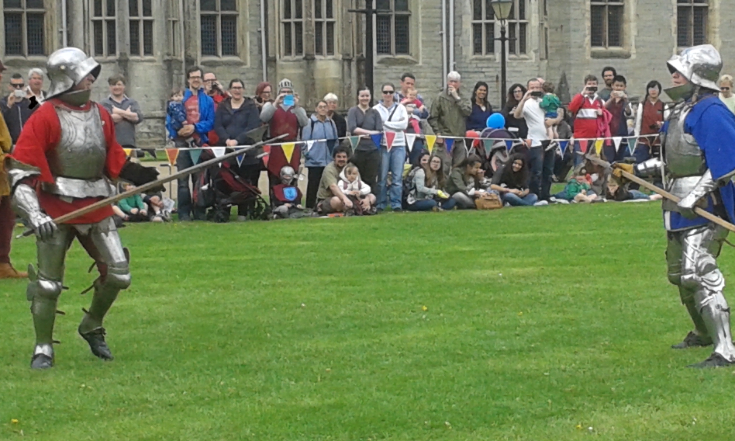 Efter frukosten checkade vi ut och begav oss på ett oplanerat äventyr. Det visade sig att just den här helgen hade Cardiff Slott ett helgevent med medeltidsmarknad, tornerspel mm. Det lät ju kul så vi gick den korta sträckan bort till slottet och kastade oss ut i vimlet.