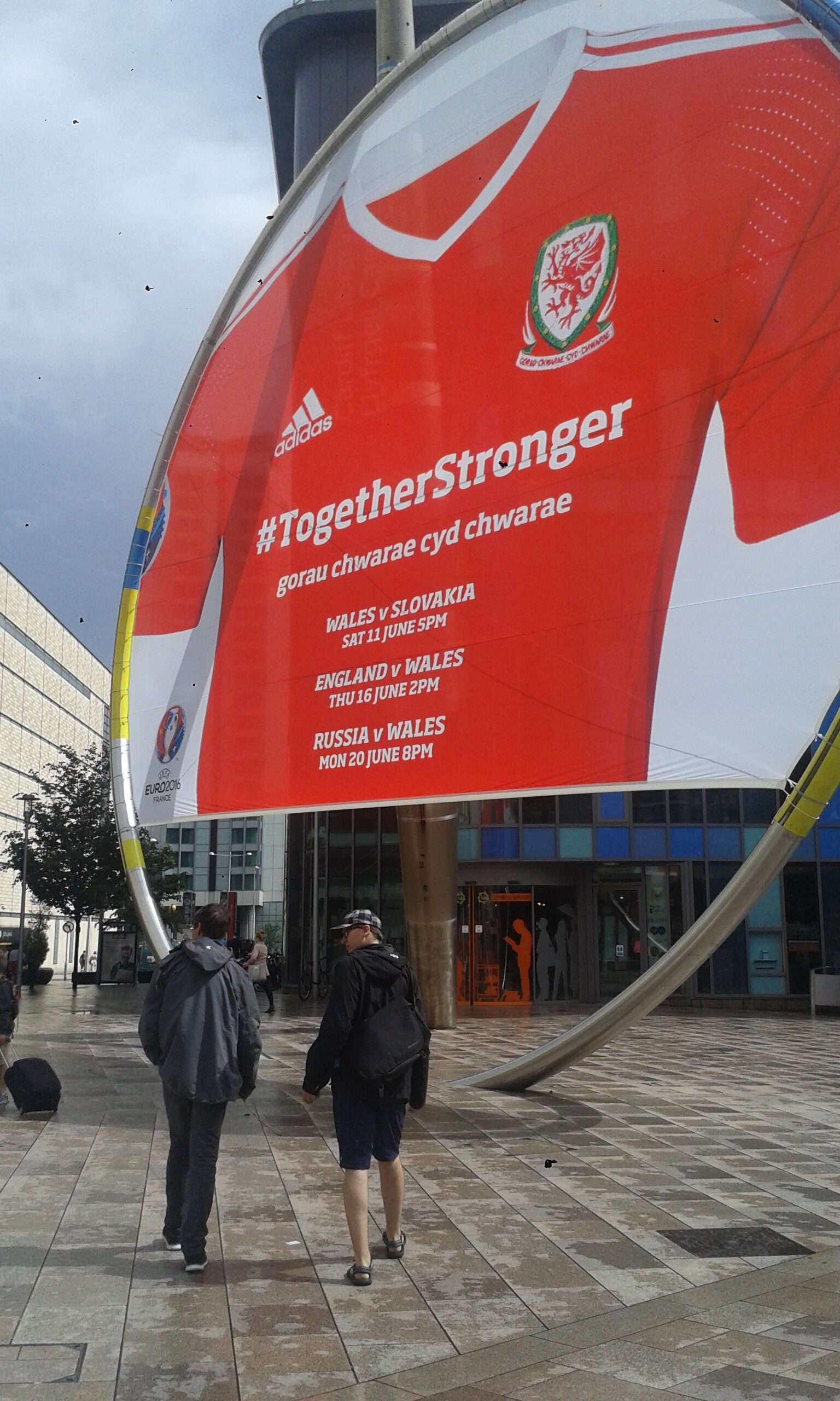 Efter att kollat in faciliteterna gick vi ut på stan en sväng. Åt varsin god hamburgare och vandrade runt i närområdet. Överallt fotbollsintresserade Walesbor som var på väg till sin favoritpub för att se dagens EM-match mot England. Det gick ju inte så bra (2-1 till England) men festen pågick till långt fram på morgonen ändå. Vi undrar lite stilla vad som hänt om de vunnit.