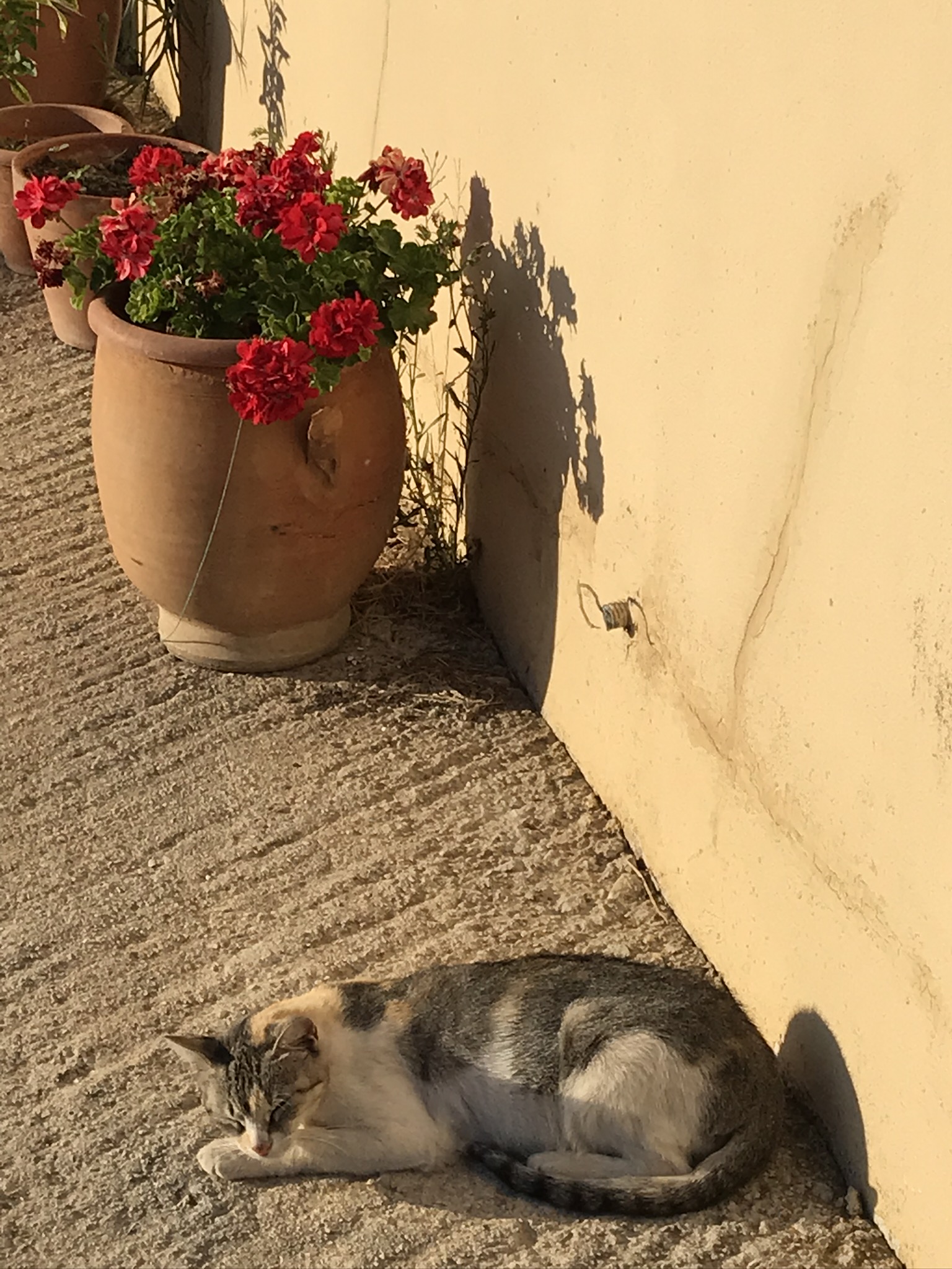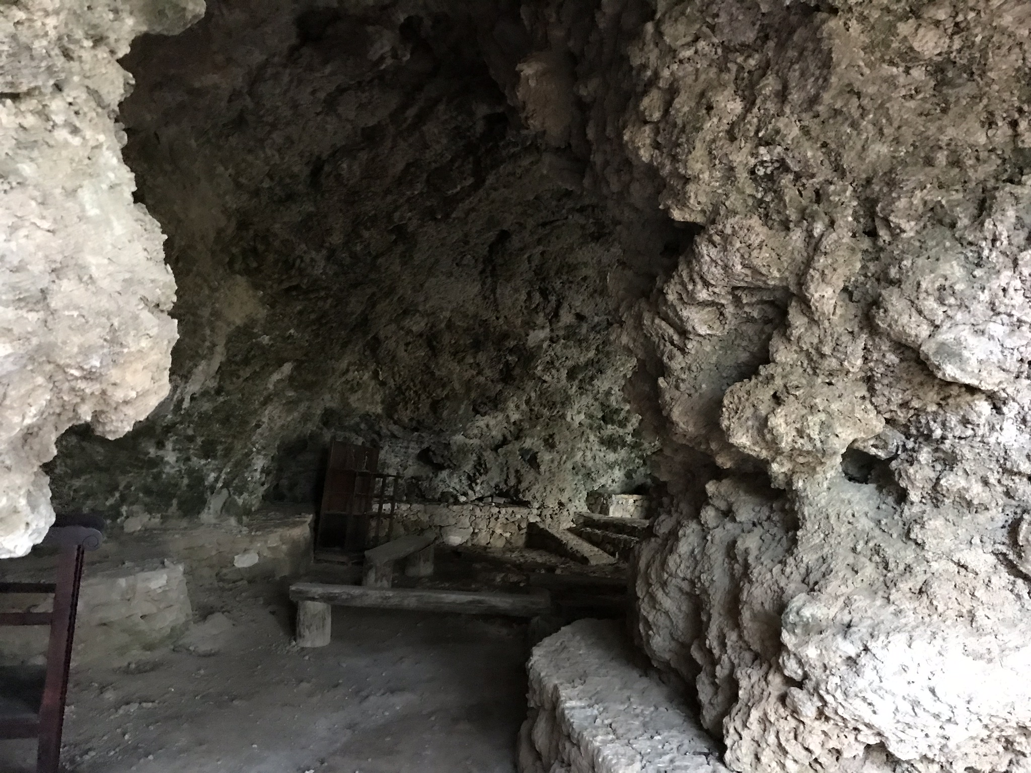 När rastlösheten sätter in är det lätt att boka saker att göra. En eftermiddags/kvällstur med The Little Fun Train hann vi också med denna dag. Vi åkte först till en ganska stor grotta, Agios Ioannis the Hermit, som tjänat som skola under andra världskriget (mycket krig idag…). Fortfarande hängde skolklockan och en del sittbänkar kvar. Utanför grottan var en vidunderlig utsikt ner mot Maleme.