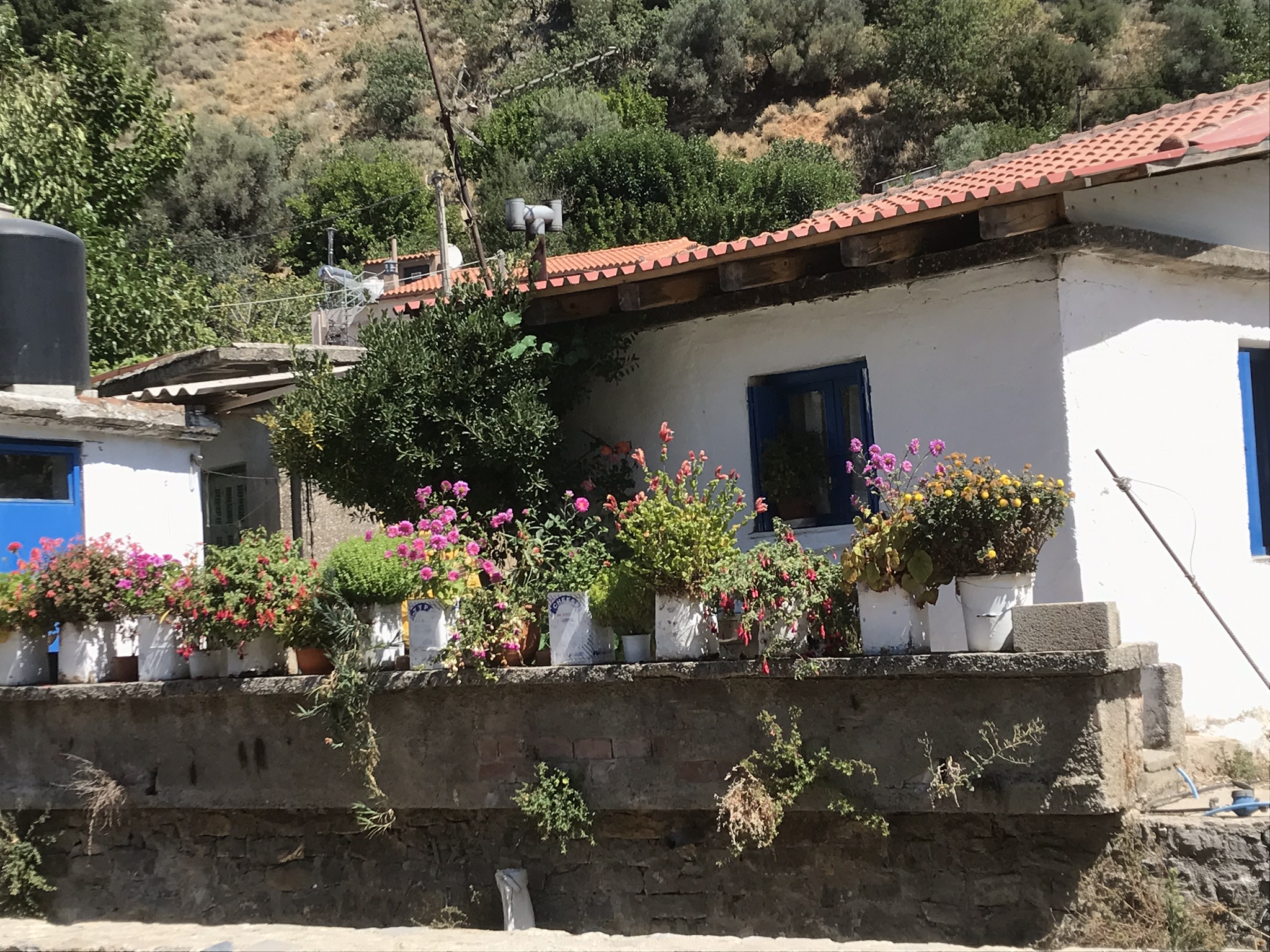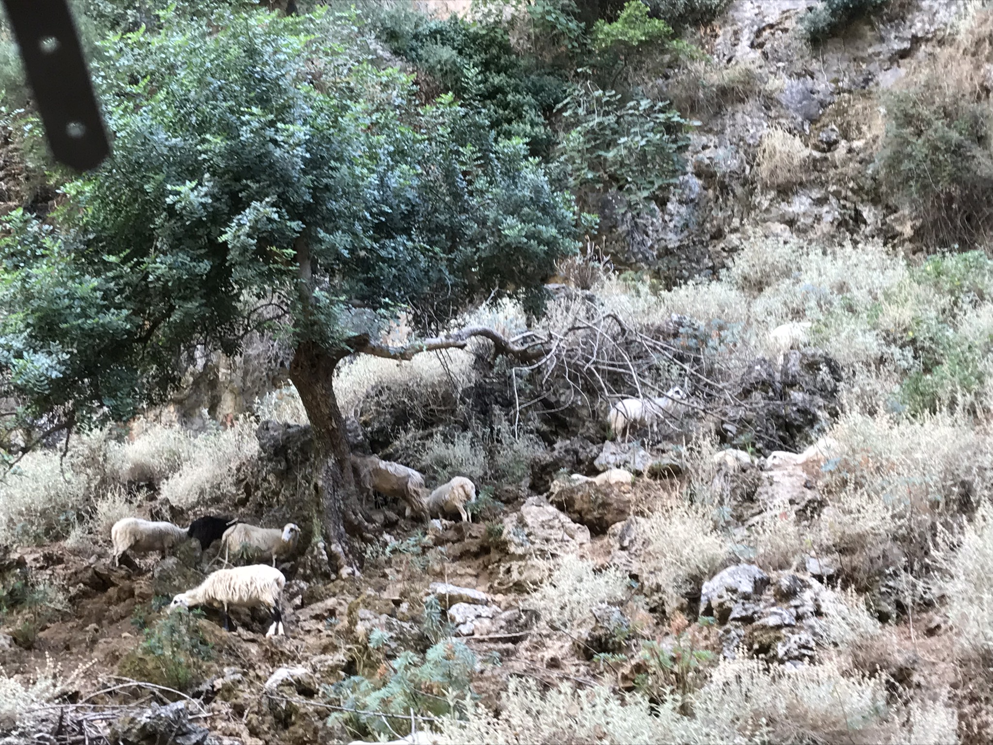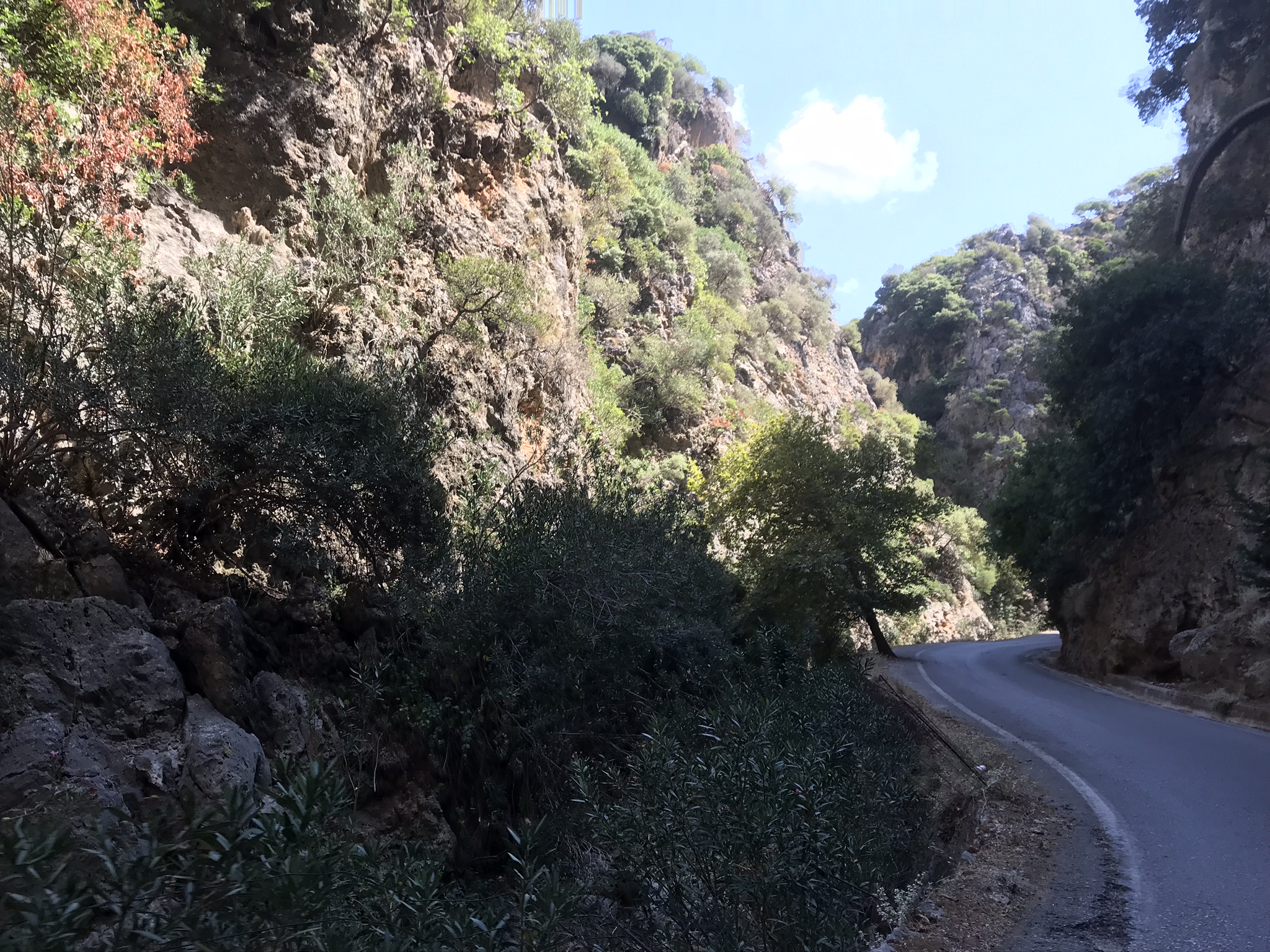 Nästa dag fick jag bestämma vad vi skulle göra eftersom det var min födelsedag :). Det fanns små vita turisttåg, typ såna där som gör en rundtur i städerna, som har flera olika rutter och besöksmål. Det jag valde idag tog oss genom härlig natur upp till Therisos. På vägen upp fick vi provsmaka olivolja som kallpressats från träden på fälten vi kunde se från den lilla fabriken. Kunde konstatera att det är skillnad på olivolja och olivolja! Färden gick vidare uppåt på vindlande vägar i en ravin med branter på båda sidor vägen där det gick getter och betade.