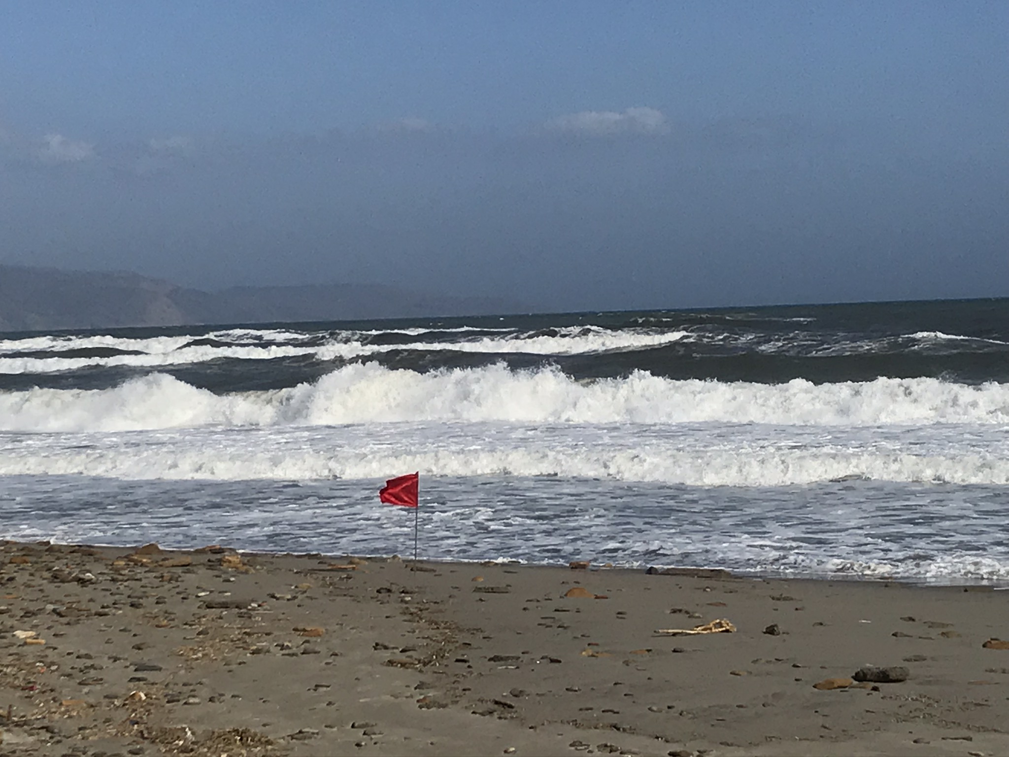Väl på hotellet igen och när törsten var släckt lockade ett bad i havet. Men tyvärr var det fortfarande röd flagga och höga vågor så det blev bara fötterna som fick känna på vattnet.
