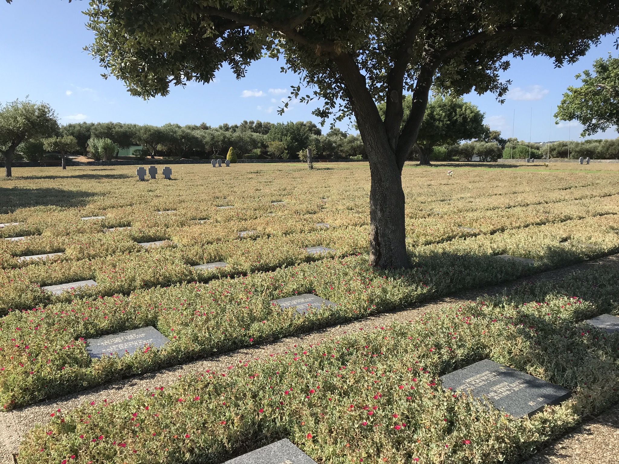 Men, sedan började rastlösheten göra sig påmind. Vi gick på burkjakt! Vi tog oss uppför en lång brant väg som ledde till German War Cemetery, där soldaterna som miste livet under striderna på ön under andra världskriget ligger begravda. Många unga soldater, och andra med såklart, som gick miste om resten av livet på grund av kriget, så fruktansvärt onödigt! Det var fruktansvärt varmt att gå till fots i backen upp på Kafkala och det var tur att vi hade med oss (om än lite för lite) vatten.