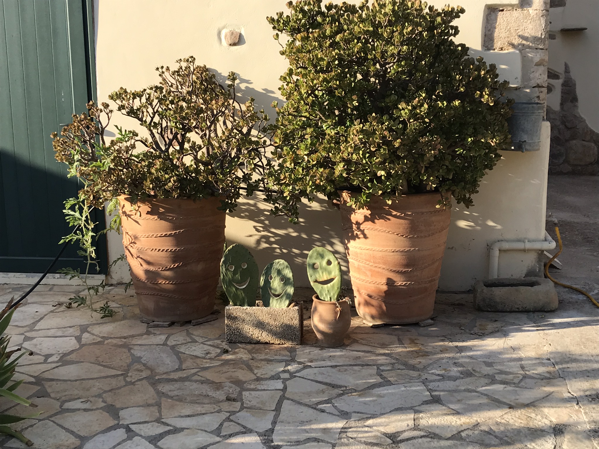 Väl tillbaka på hotellet igen satt vi och mös i baren, tittade ut över det ganska upprörda havet och väntade på att middagsbuffén skulle öppna. Utanför i trädgården gick personal och samlade in örter som skulle användas i maten och de har även egen tillverkning av olivolja.