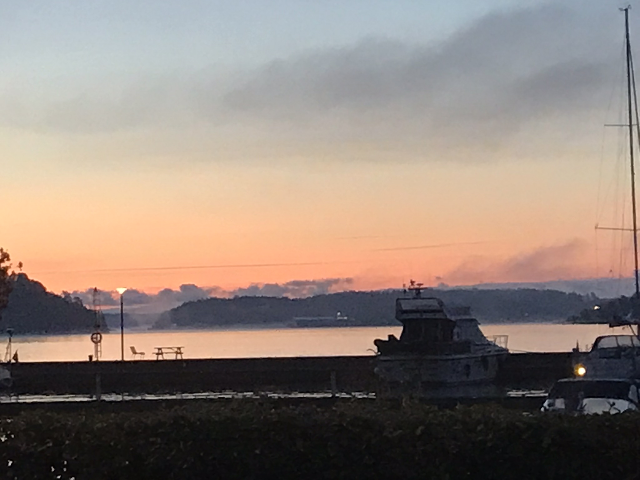 Så vaknade vi upp på vår 26:e bröllopsdag tillika sista dagen på vår resa, till en dag med klarblå himmel och… alldeles tyst. Inget brusande från upprörda vågor eller trädkronornas vinande. Fantastiskt! Vi fick så äntligen en härlig dag på klapperstenstranden i varsin solstol och med en god bok.