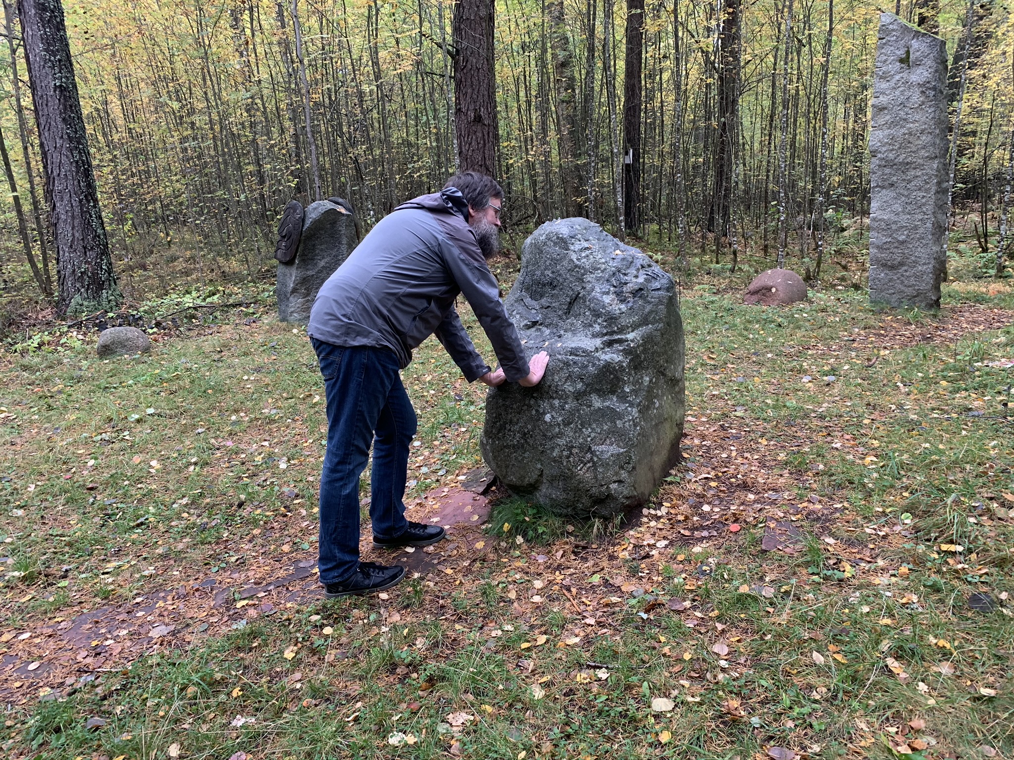Vi gjorde sedan ett stopp i Leksand. Där valde vi lite på måfå att följa kringlorna och landade vid en konstinstallation som heter Om människan. Vi spenderade en trevlig timme med att gå runt längs stigen och kika på den konst man installerat där. Området var dock trevligt att vandra i och vi rekommenderar ett besök om man är i närheten.