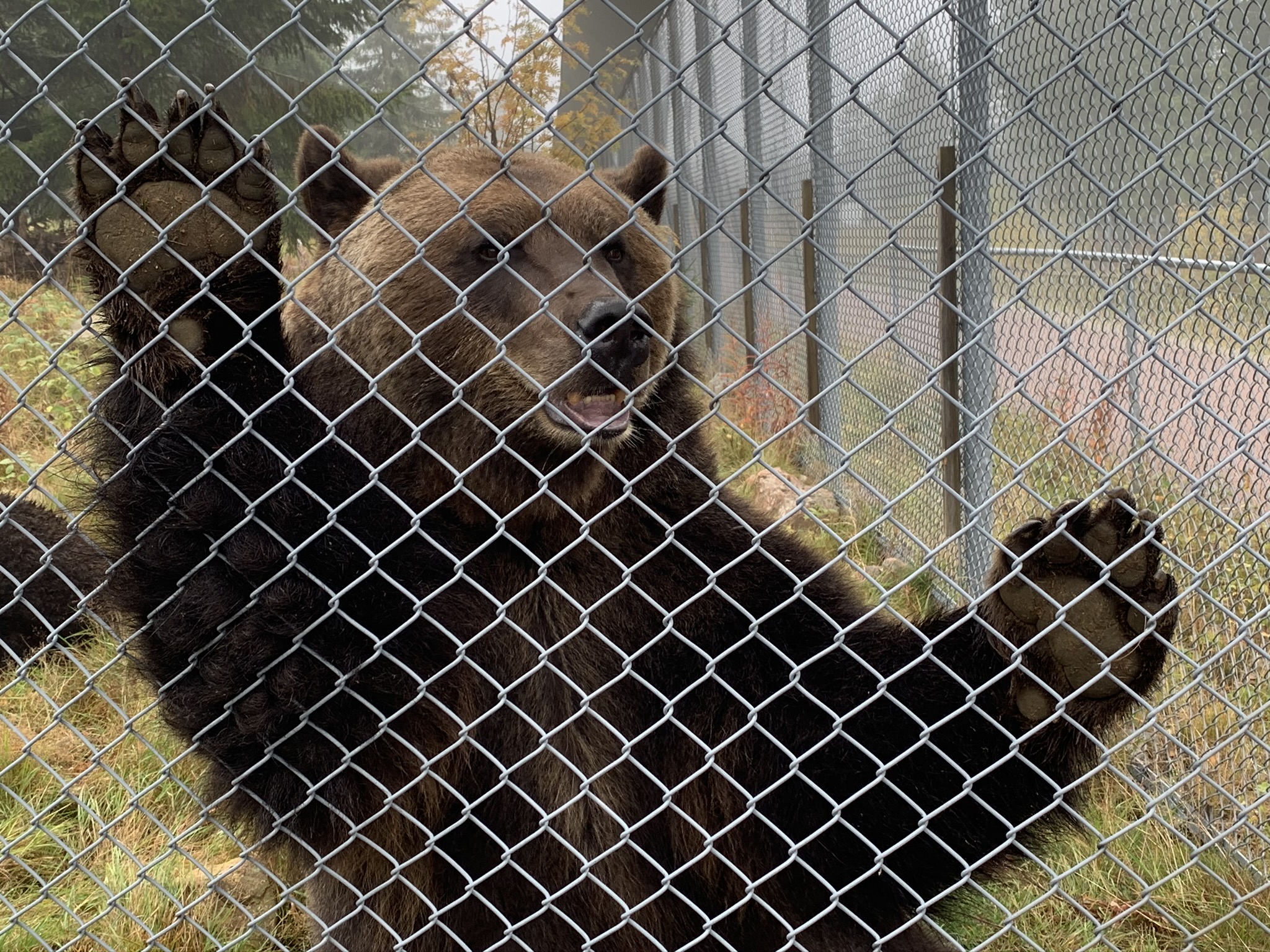 Ett annat djur vi brukar ha svårt att få syn på är lodjuret. Så var det också denna gång. Inget lodjur ville visa sig. Vi vandrade istället vidare och fick syn på en brunbjörn som vilade alldeles vid staketet. Det kändes rätt bra att staketet fanns där måste jag erkänna.