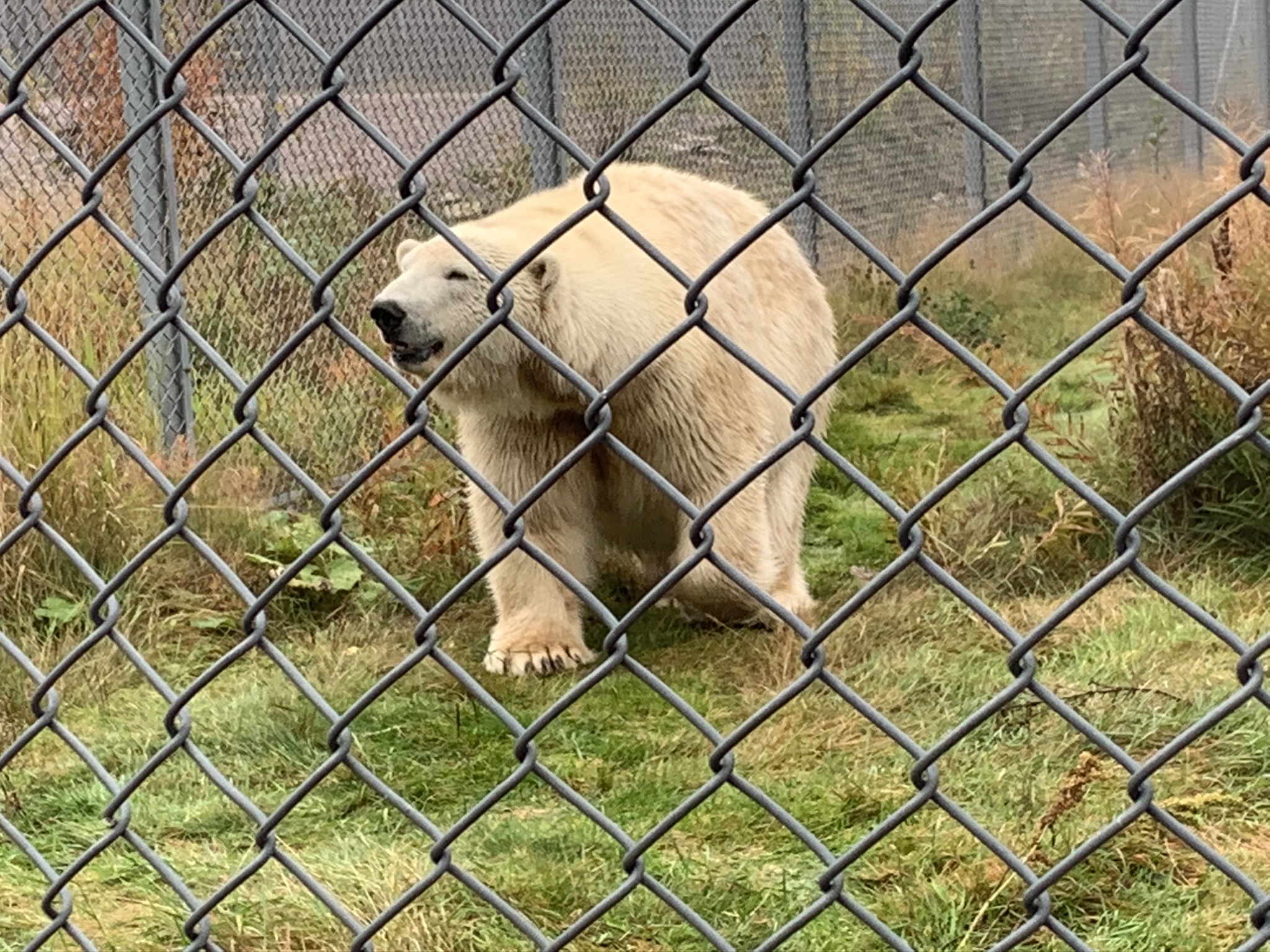 Därefter gick promenaden vidare förbi ett av björnhägnen och upp mot isbjörnarna. Där fick vi syn på vårt första djur, en isbjörn som vandrade kring i tystnaden. Den såg lite malplacerad ut mot vildmarken den var placerad i tyckte vi. Tystnaden avbröts också abrupt av andra människor som inte uppskattade tystnaden på samma sätt som oss. Isbjörnen gillade det nog inte heller för den lommade snabbt iväg in i skyddet av det stora hägnet.