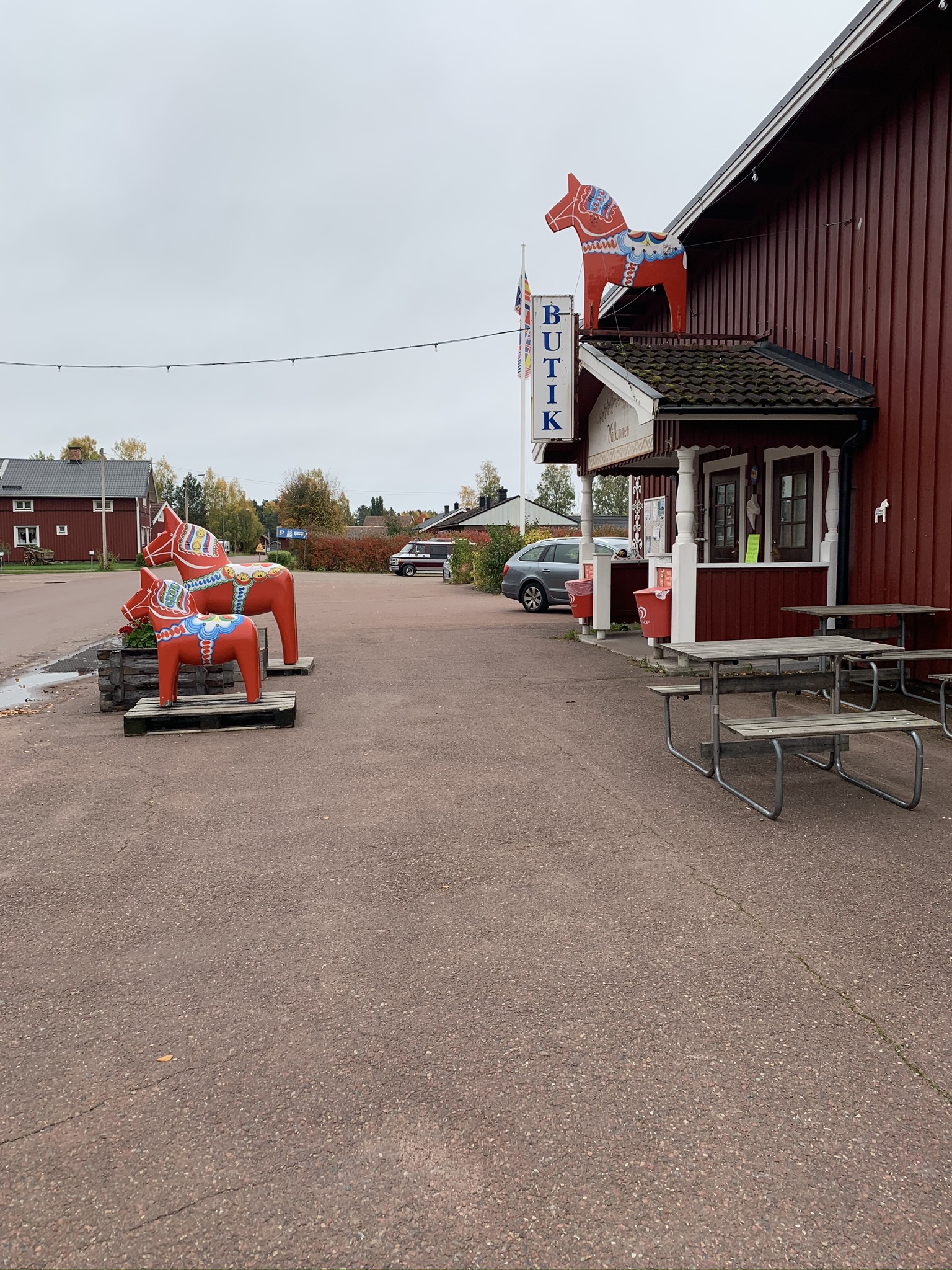 Nu återstod inte mycket mer än att sätta Orsa kommun på vår geochachingkarta innan vi drog oss tillbaks mot Hedemora och stugan. Men innan vi helt var klara måste vi ju göra det alla turister i trakten gör antar vi; stanna till i Nusnäs och kika på Dalahästtillverkningen.